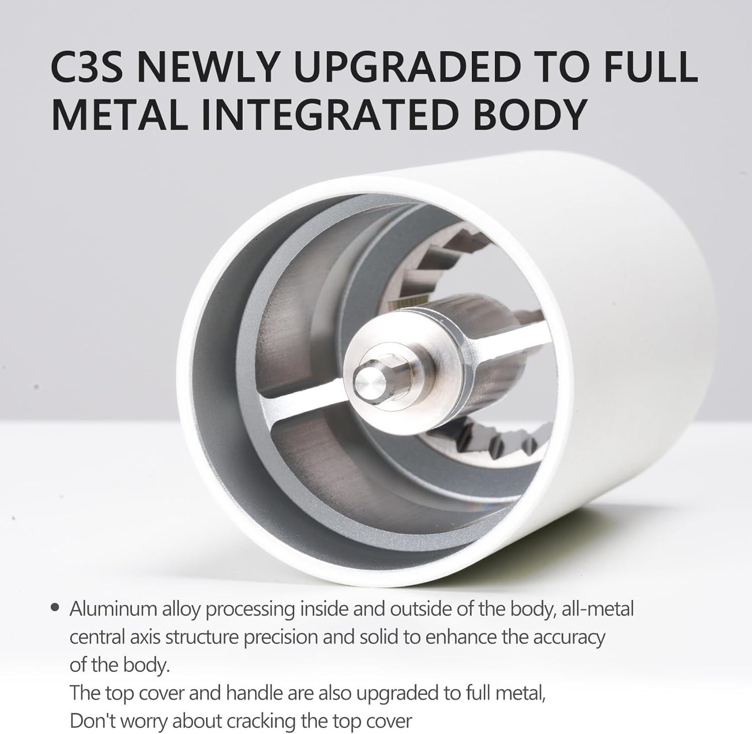 - [ Durable Manual Coffee Grinder ] TIMEMORE C3S hand coffee grinder upgraded to full metal unibody, It is made of CNC machining stainless steel conical burr. Double bearing central axis positioning-uniform grinding particles. Burr size 38 mm-efficient grinding of coffee beans