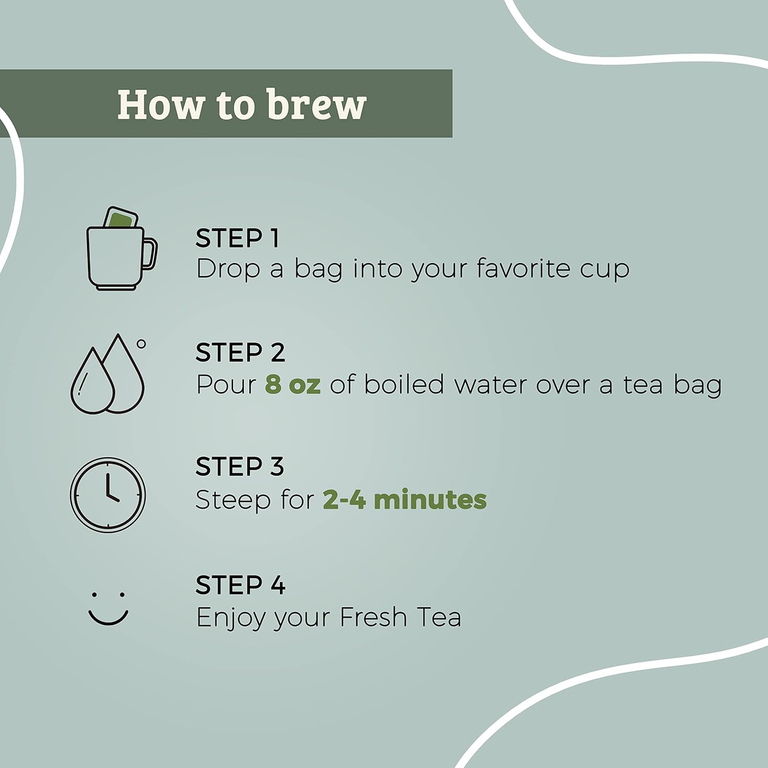 - Fescha jasmine green tea is a very smoothing tea that comes in bags and makes an excellent morning tea, his refreshing, natural blend is a great way to wake up your body with caffeine that is not as jarring as coffee.