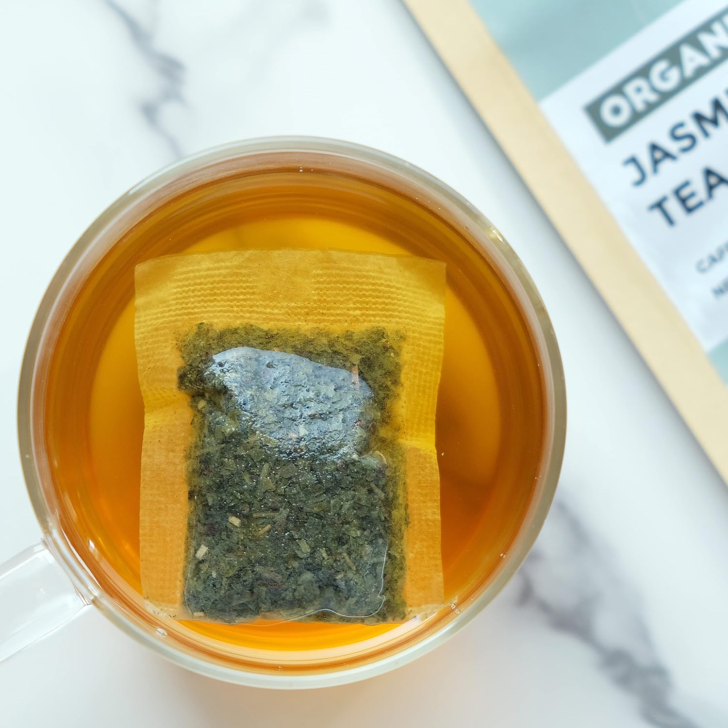 Fescha Organic Jasmine Green Tea Bags Flower-scented Tea (100-count), Eco-Conscious Tea Bags, Packed by Resealable Kraft Bag