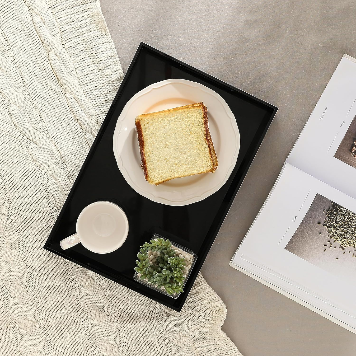 Glossy Black Sturdy Acrylic Serving Tray with Handles-10x15Inch-Serving Coffee,Appetizer,Breakfast,Butler-Kitchen Countertop Tray-Makeup Drawer Organizer-Vanity Table,Ottoman Tray-Decorative