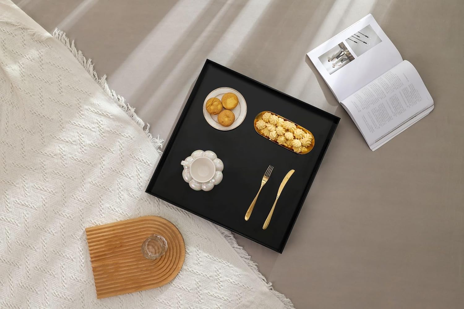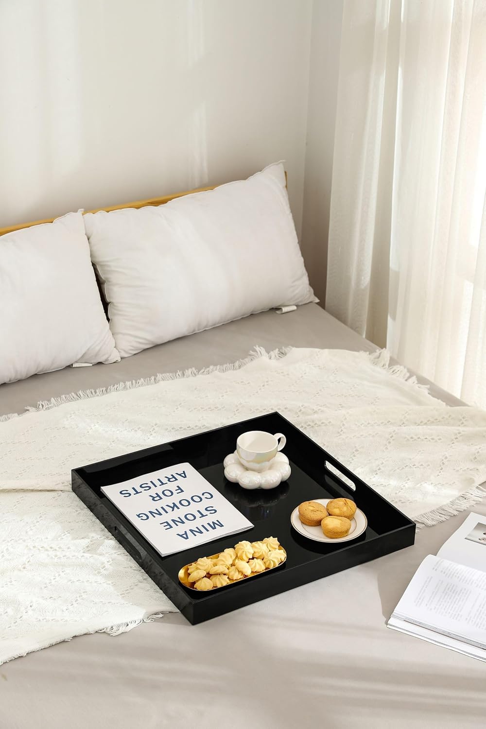 Glossy Black Sturdy Acrylic Serving Tray with Handles-24x24Inch-Serving Coffee,Appetizer,Breakfast,Butler-Kitchen Countertop Tray-Makeup Drawer Organizer-Vanity Table,Ottoman Tray-Decorative