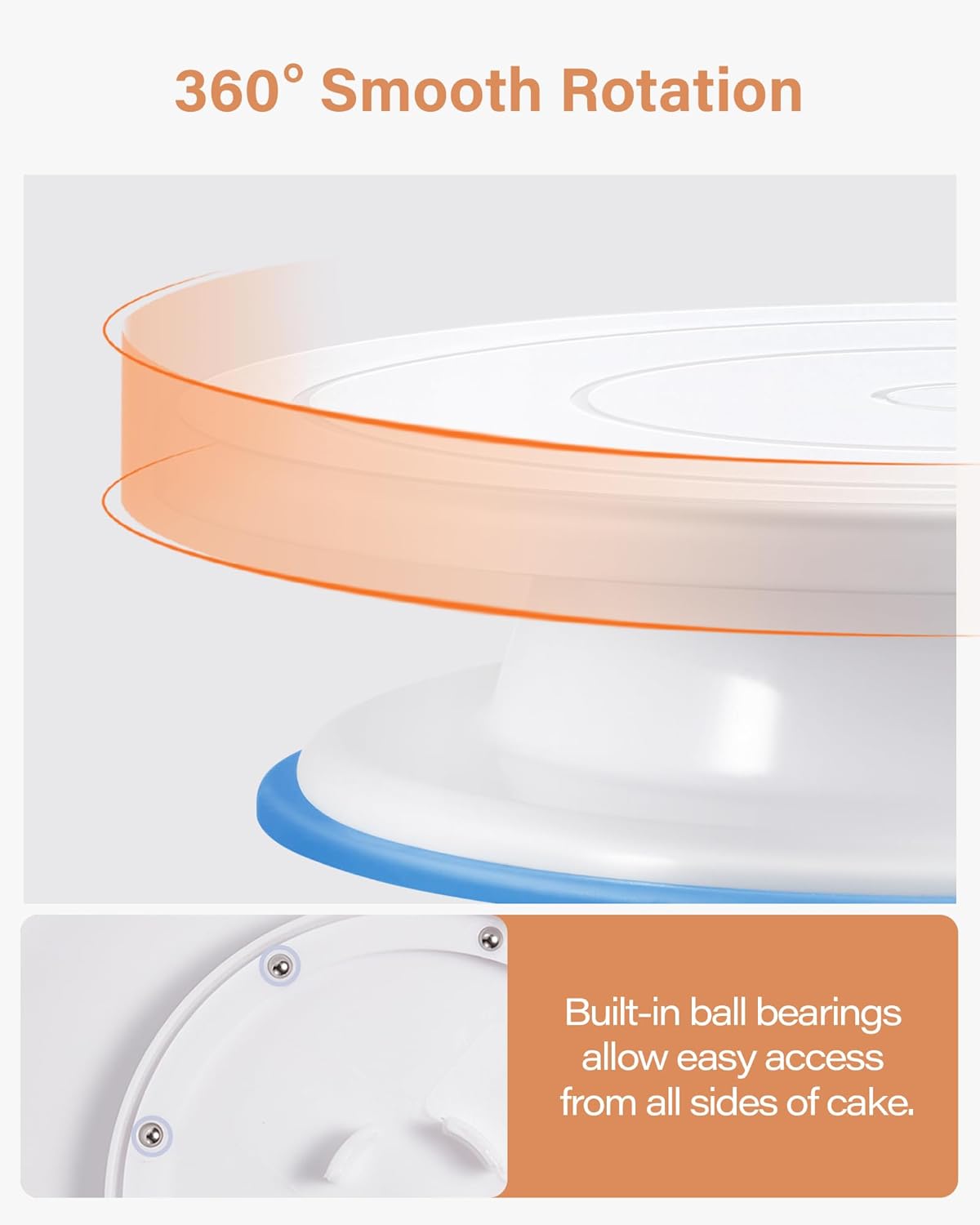 - 360° Rotating Cake Turntable: Made of dishwasher-safe Polypropylene with a non-slip surface, this 11" round turntable is ideal for medium-sized cakes. With a raised cake stand at a comfortable height of 3 inches, it provides convenience and comfort during decoration. The smooth rotation allows for easy frosting piping and smoothing, catering to both left-handed and right-handed decorators. It also has a non-slip surface and base to securely hold the cake in place while rotating.