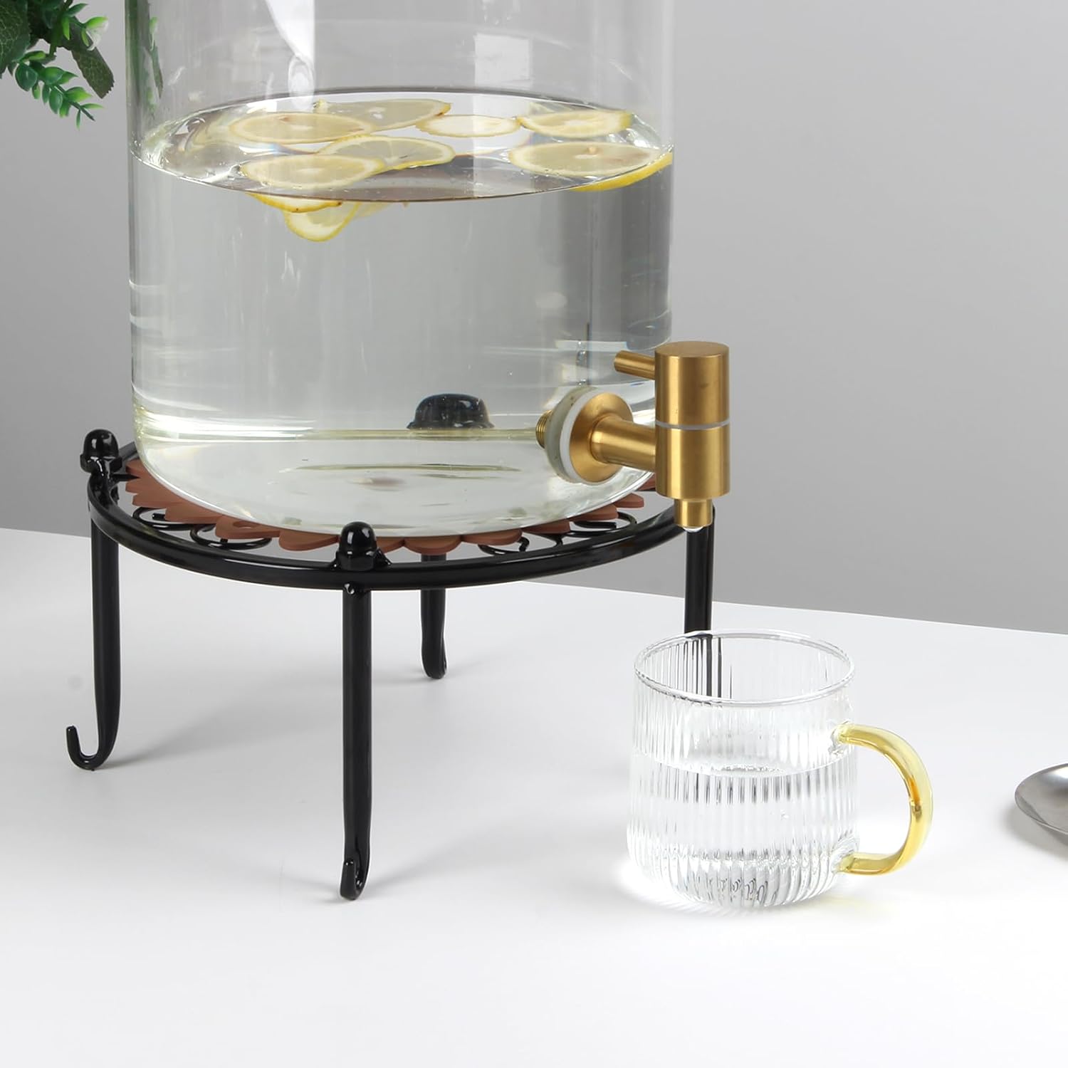 Heavy-duty Metal Beverage Drink Dispensers Stand, Drinking Crock Cold Water Glass Container Holder, Countertop Rack Base for Juice Lemonade Dispenser Mason Jar, Max Diameter 8", Black