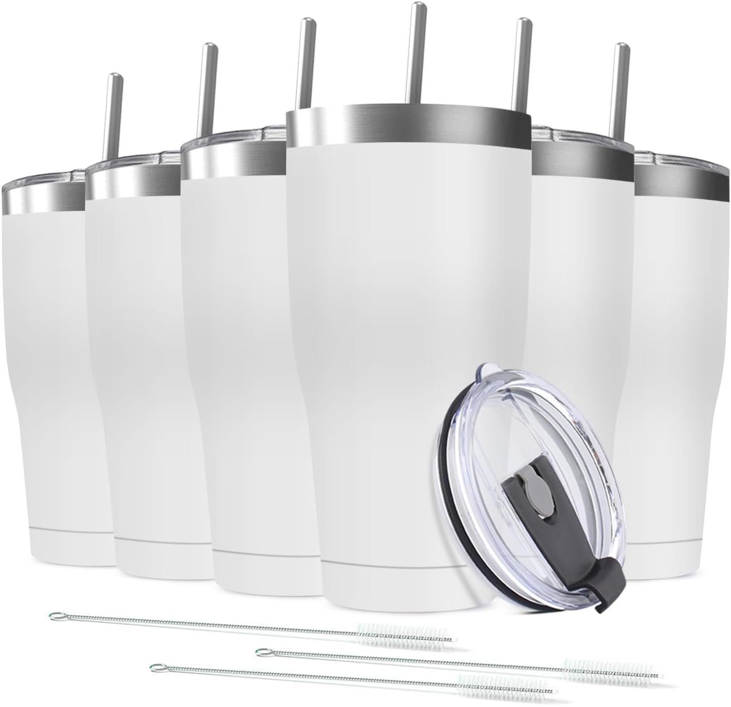 6 Pack 30oz Stainless Steel Tumblers Bulk Reusable Travel Mugs with Lid, Double Wall Powder Coated Coffe Cup for Home, Office, Outdoor Suitable for Vehicle Cup Holders