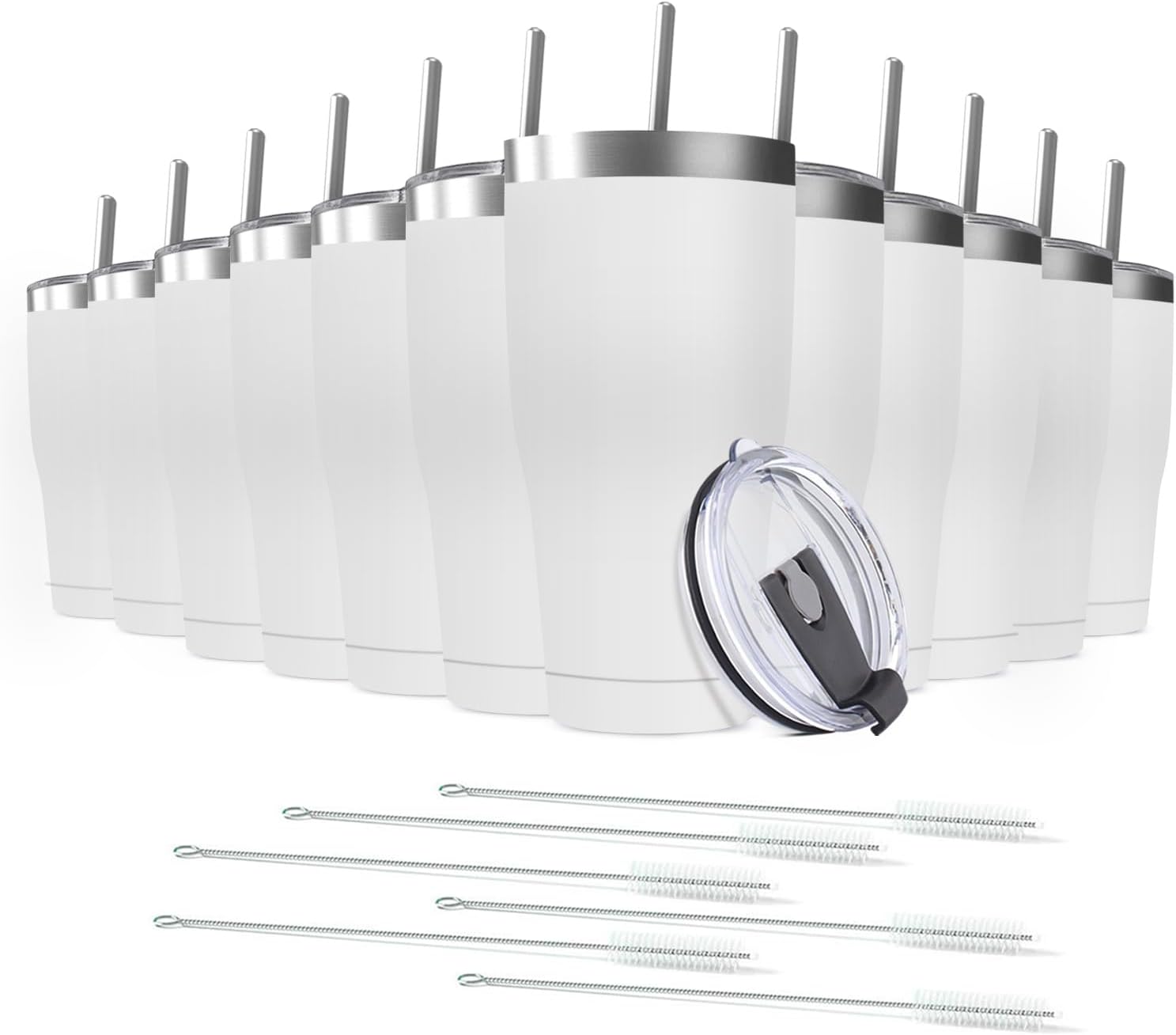 12 Pack 30oz Stainless Steel Tumblers Bulk Reusable Travel Mugs with Lid, Double Wall Powder Coated Coffe Cup for Home, Office, Outdoor Suitable for Vehicle Cup Holders