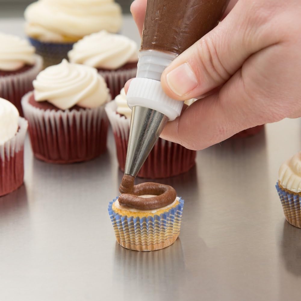 - Each bag features a narrow end that can be trimmed to fit your desired piping tip or coupler (sold separately), giving you complete flexibility. Whether you're piping borders, rosettes, or detailed patterns, these bags adapt easily to any decorating tip, or can be used as-is for simple applications like filling or writing.