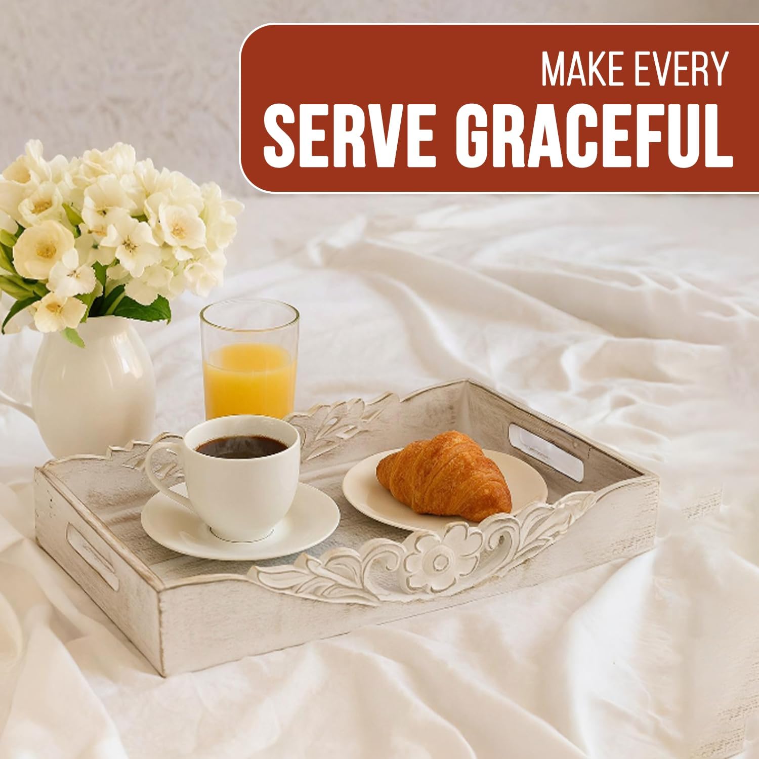 - Stylish Home Decor Accessory: This decorative serving tray with handles boasts a sober design that creates a unique coffee tray, a great addition to any decor in your home. Our breakfast tray stands out with its alluring details which are carefully handcrafted by Skilled Indian Artisans.
