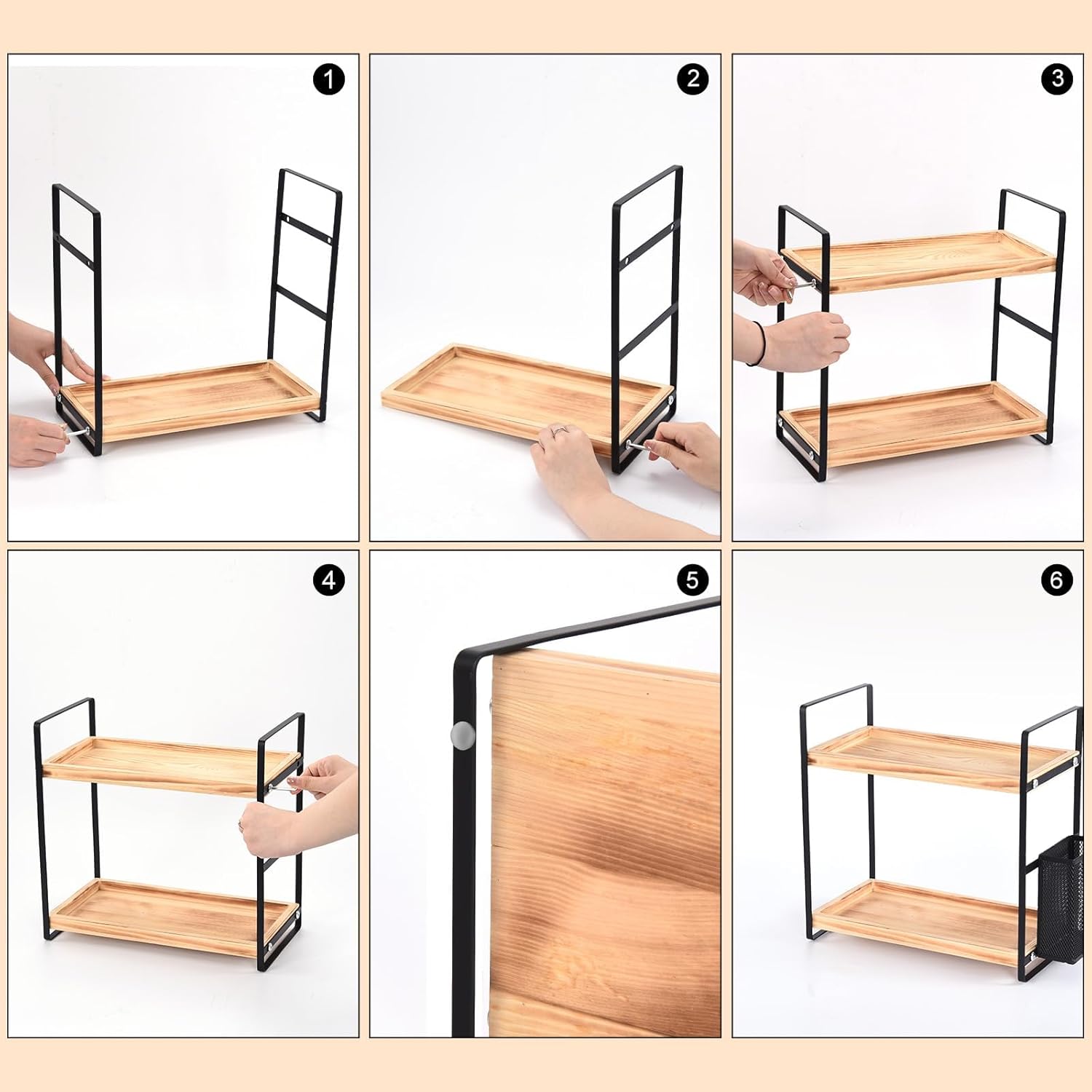 - MULTIPURPOSE: The Kitchen and Coffee counter organizer is also suitable for Coffee organzier, bedroom, and vanity. It can be as a cosmetic organizer, toothbrush holders ,spice organizer, coffee organizer, kitchen countertop organizer etc. The wooden elements of the bathroom organizer can also decorate your counters and are a great addition to your home.
