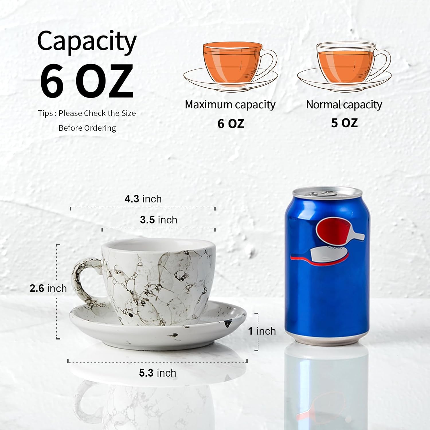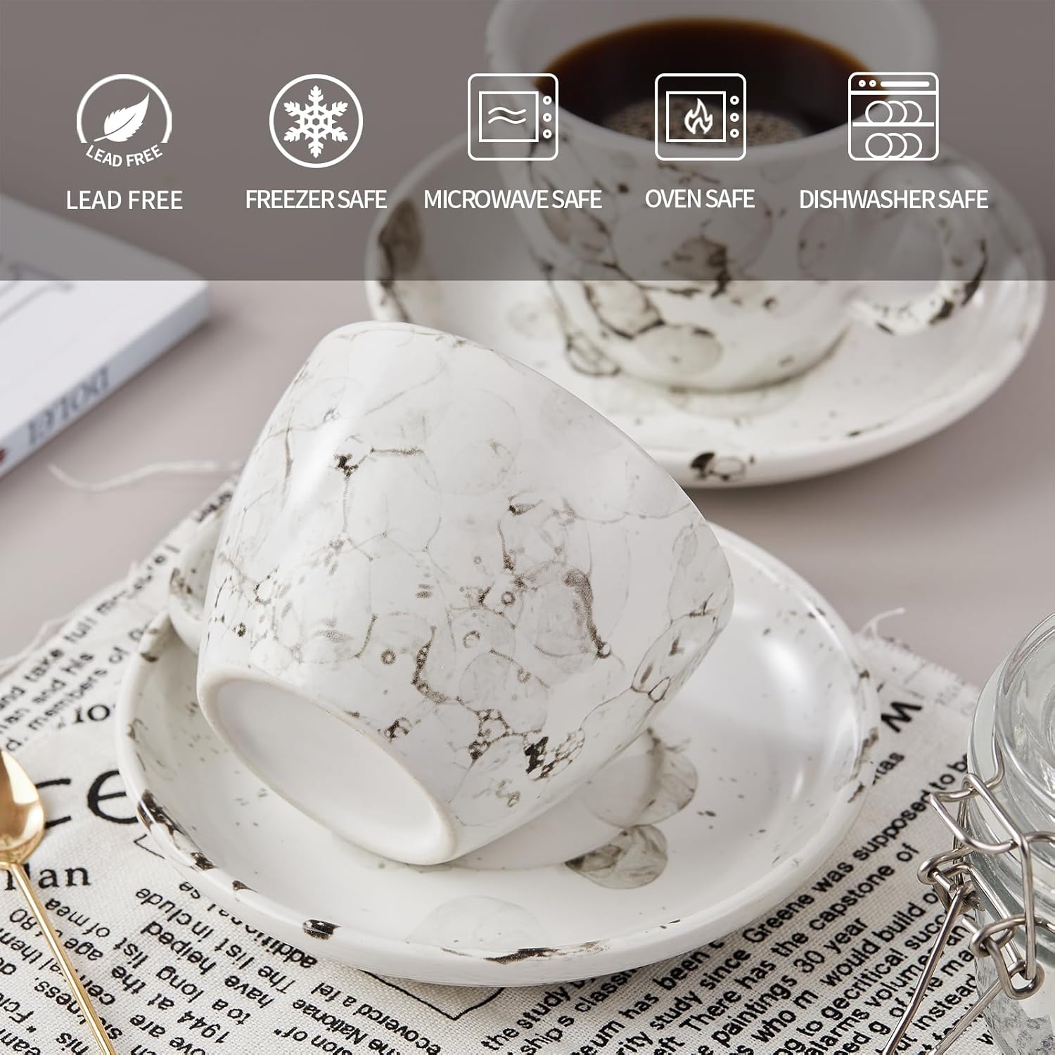 - 【The Elegant Gift】The marble porcelain mini coffee cups with saucers were beautifully and safely Gift box packed.It is a decent gift for your friends and family on Housewarming,Wedding party,Christmas.Any cafes, restaurants, and exquisite decorations are inseparable from it.