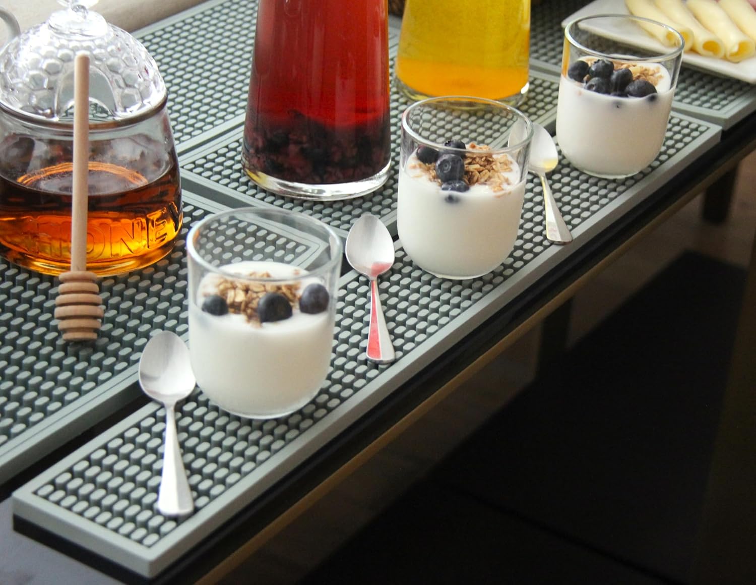- VERSATILE USE: Ideal for bars and restaurants, our Rail Bar Mats are a solution to maintain the hygiene of your cocktail shakers and other bar tools. Designed to serve cocktails and drinks, helps reduce noise from glassware and bottles coming into contact with the bar surface. It also can be used as a glass drying mat.