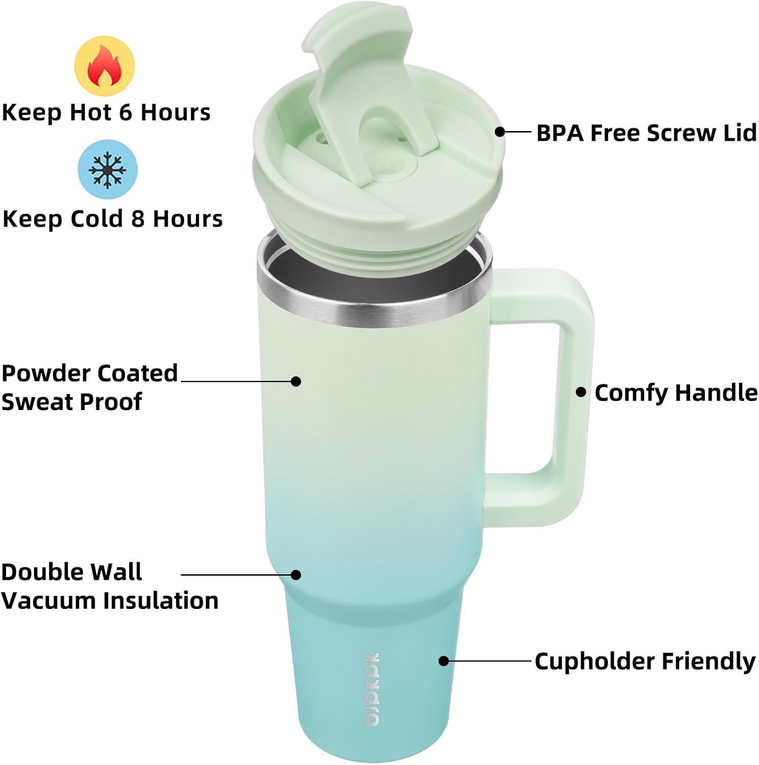 BJPKPK 40 oz Insulated Tumbler With Lid And Straw Stainless Steel Tumblers Cup With Handle For Women And Men,Mint
