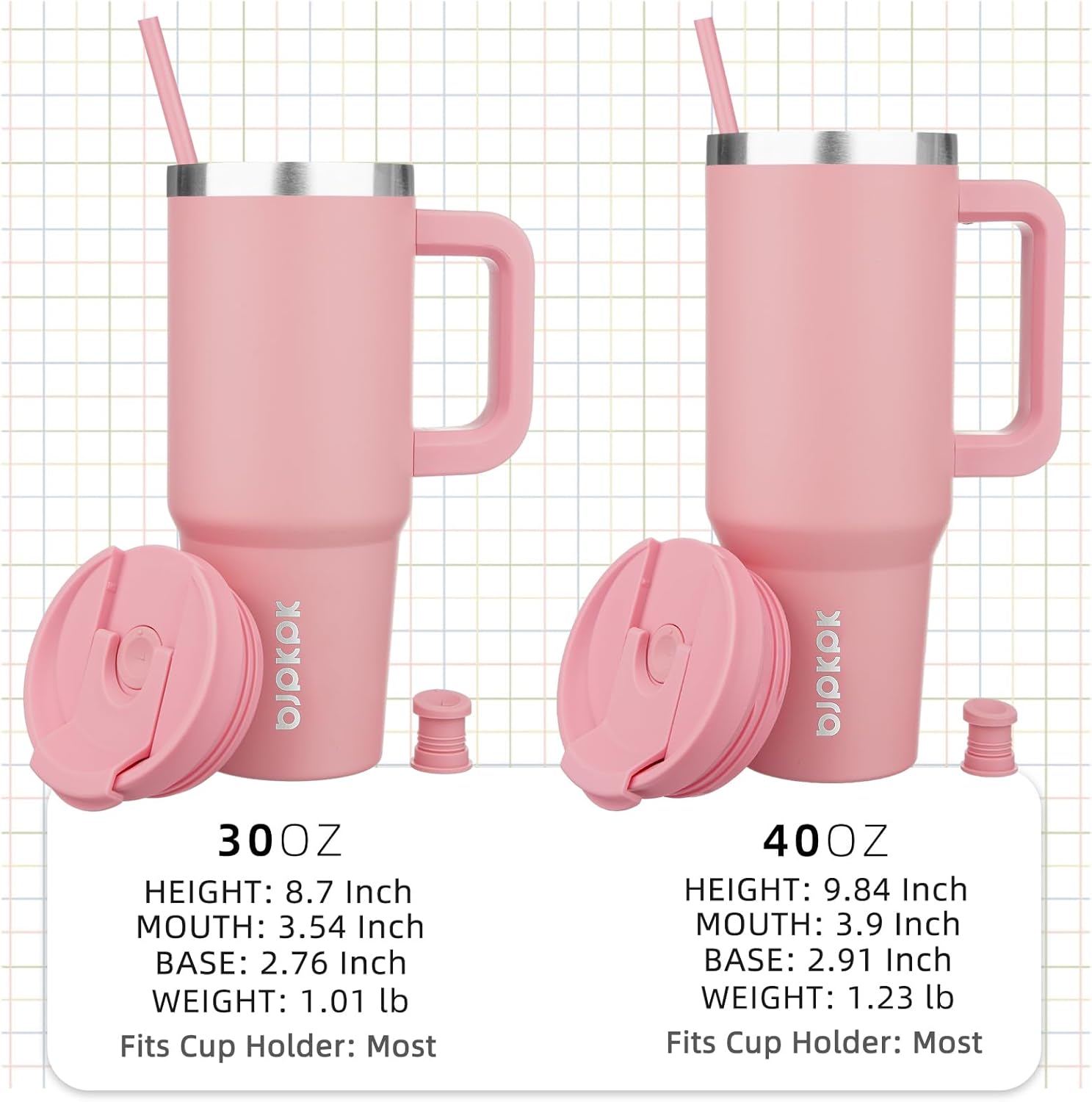 - Cupholder Friendly Travel Mugs With Handle: The Insulated Cups Has a Narrow Bottom And A Wide Mouth Fits Most Cup Holder In Car, With A Comfortable Ergonomic Silicone Handle And Two Reusable Straw To Use More Portable, You Can Stay Sipping From Your Essential Hydration Companion, Even On Your Busiest Days