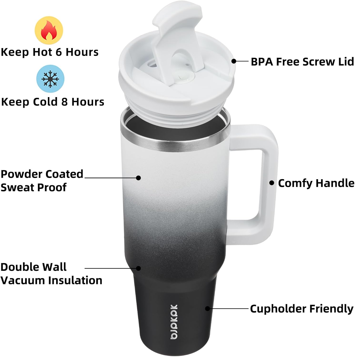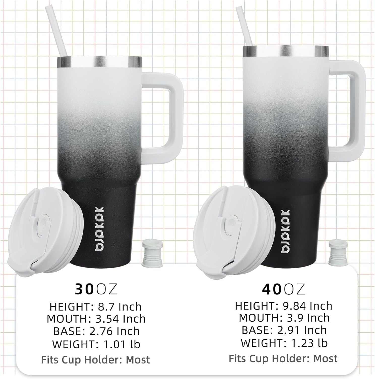 - Cupholder Friendly Travel Mugs With Handle: The Insulated Cups Has a Narrow Bottom And A Wide Mouth Fits Most Cup Holder In Car, With A Comfortable Ergonomic Silicone Handle And Two Reusable Straw To Use More Portable, You Can Stay Sipping From Your Essential Hydration Companion, Even On Your Busiest Days