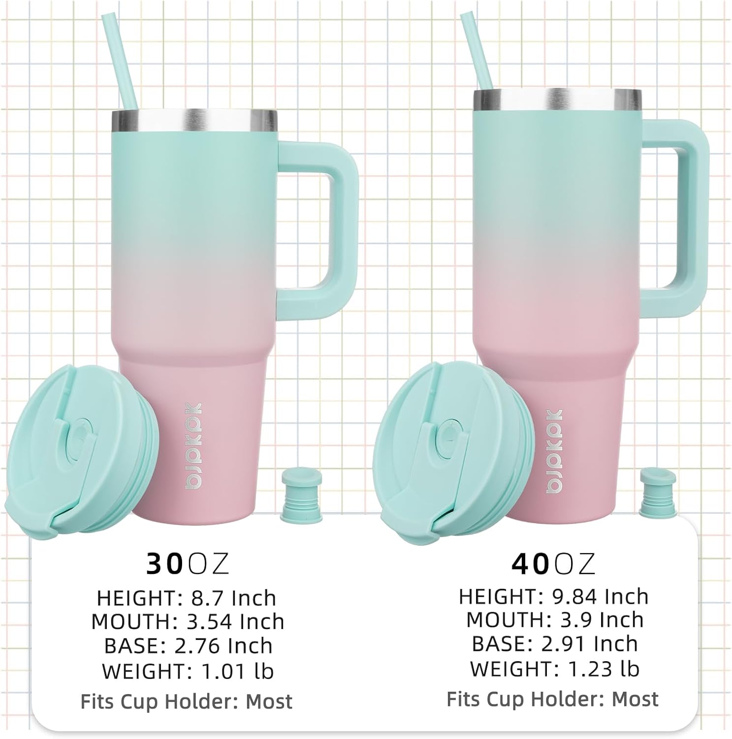 BJPKPK 30 oz Stainless Steel Tumbler With Handle Insulated Tumblers With 2 Straw Travel Coffee Mug With Lid,Bubble Gum