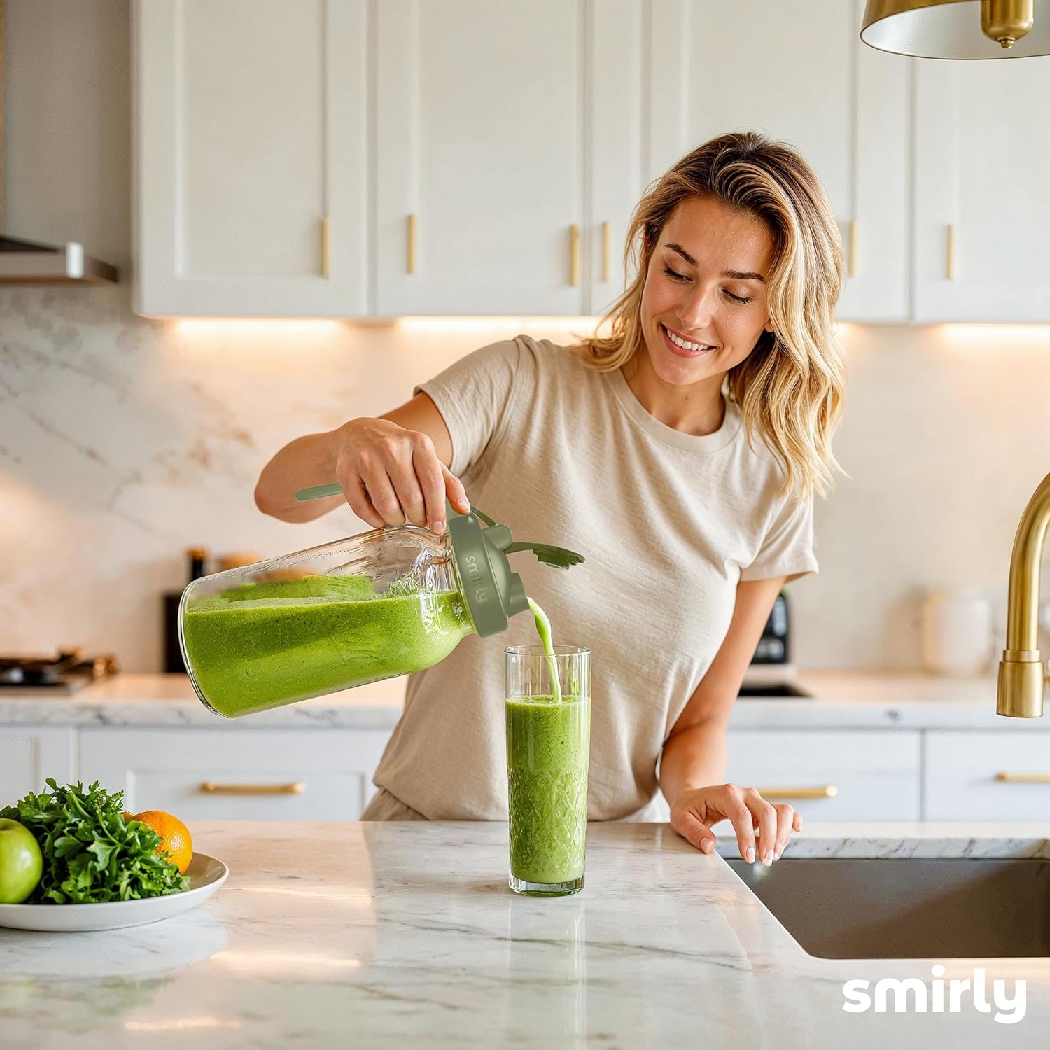 SMIRLY 64 oz Mason Jar Pitcher,Glass Pitcher with Wide Mouth,Water Jug with Double Leak Proof Lid for Iced Coffee,Hot Water,Breast Milk