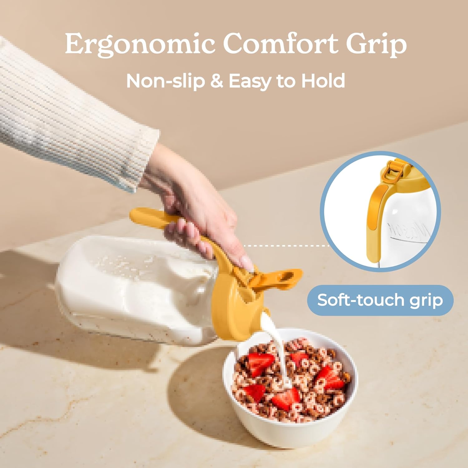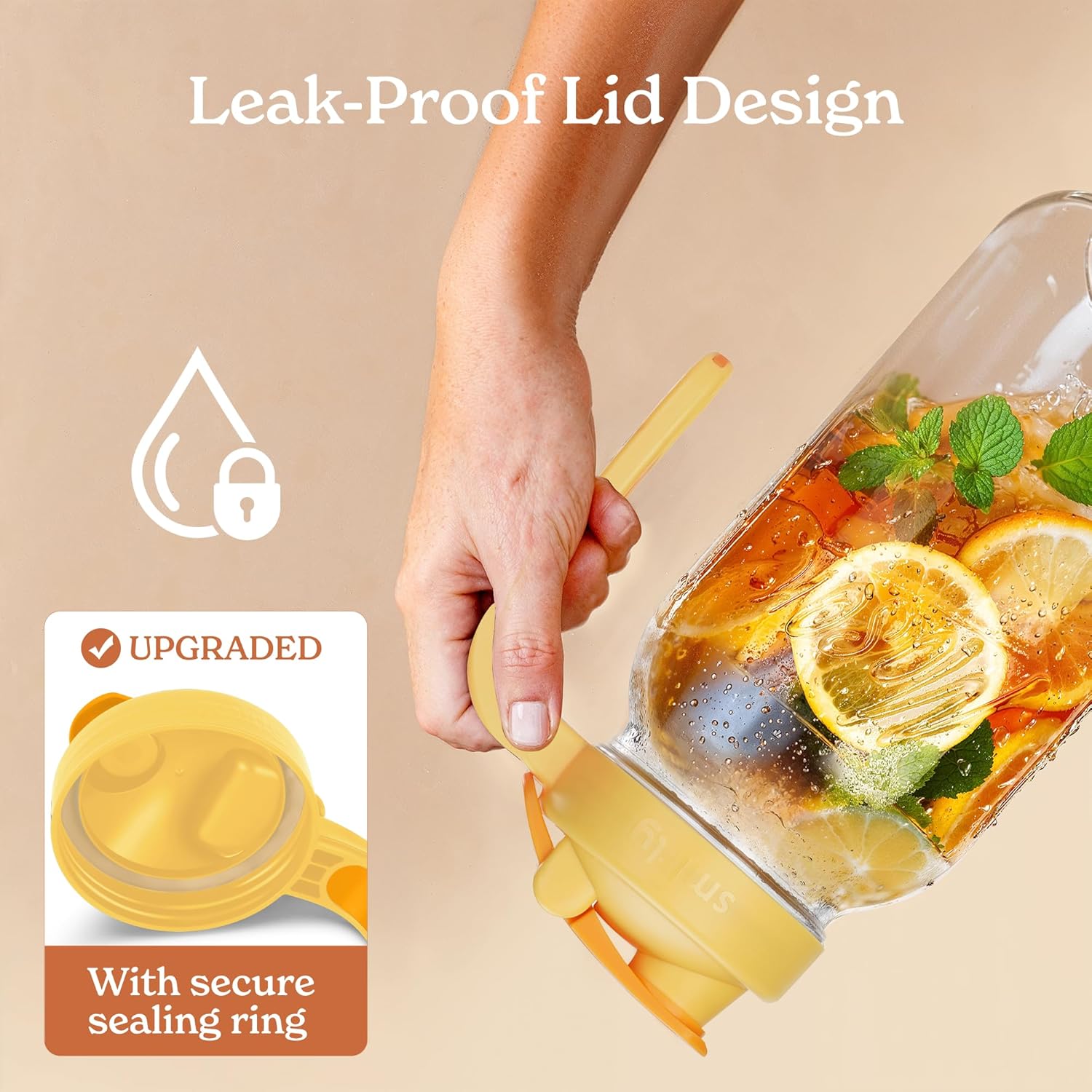 - Functional design: The non-slip handle on this 2 quart pitcher with lid ensures steady pouring.Hanging ring on this large mason jars adds convenience for easy carrying and storage
