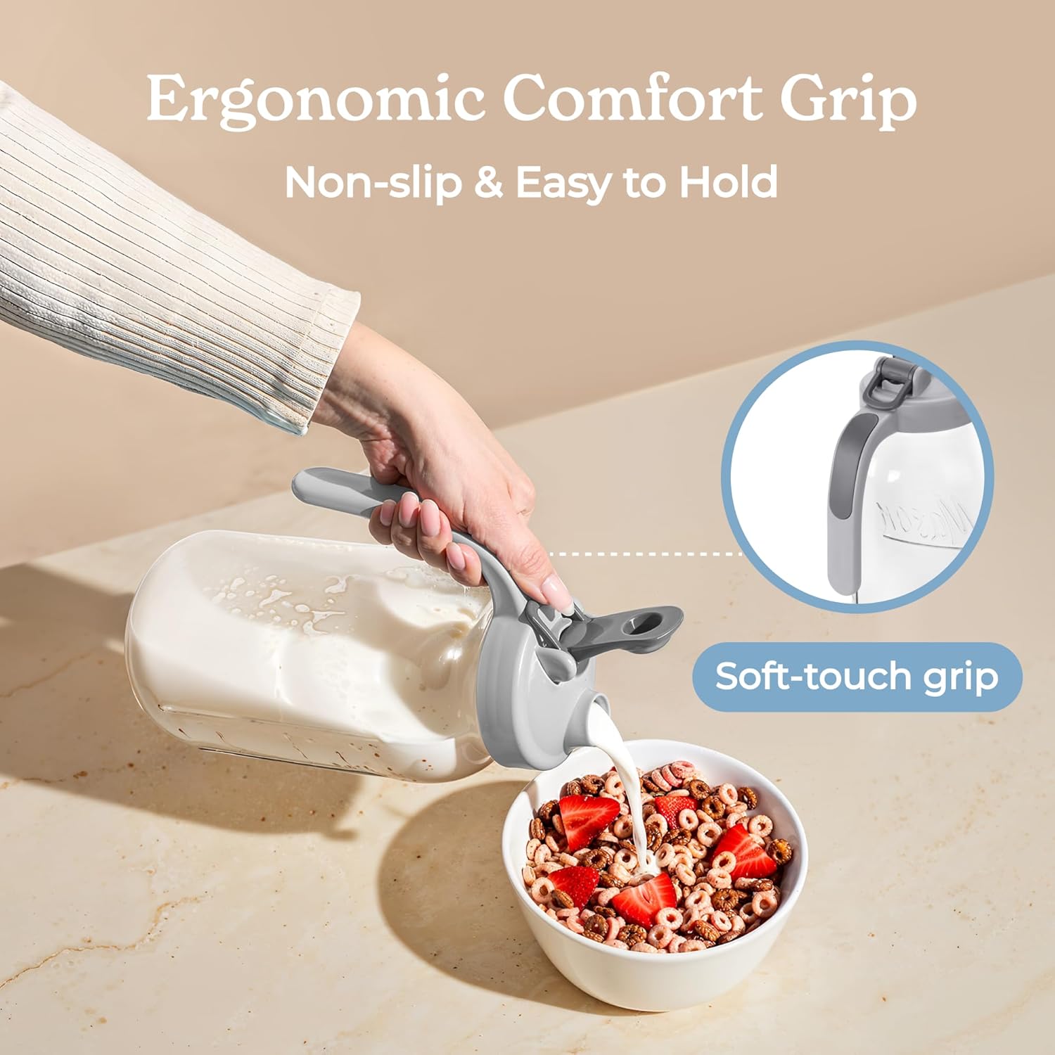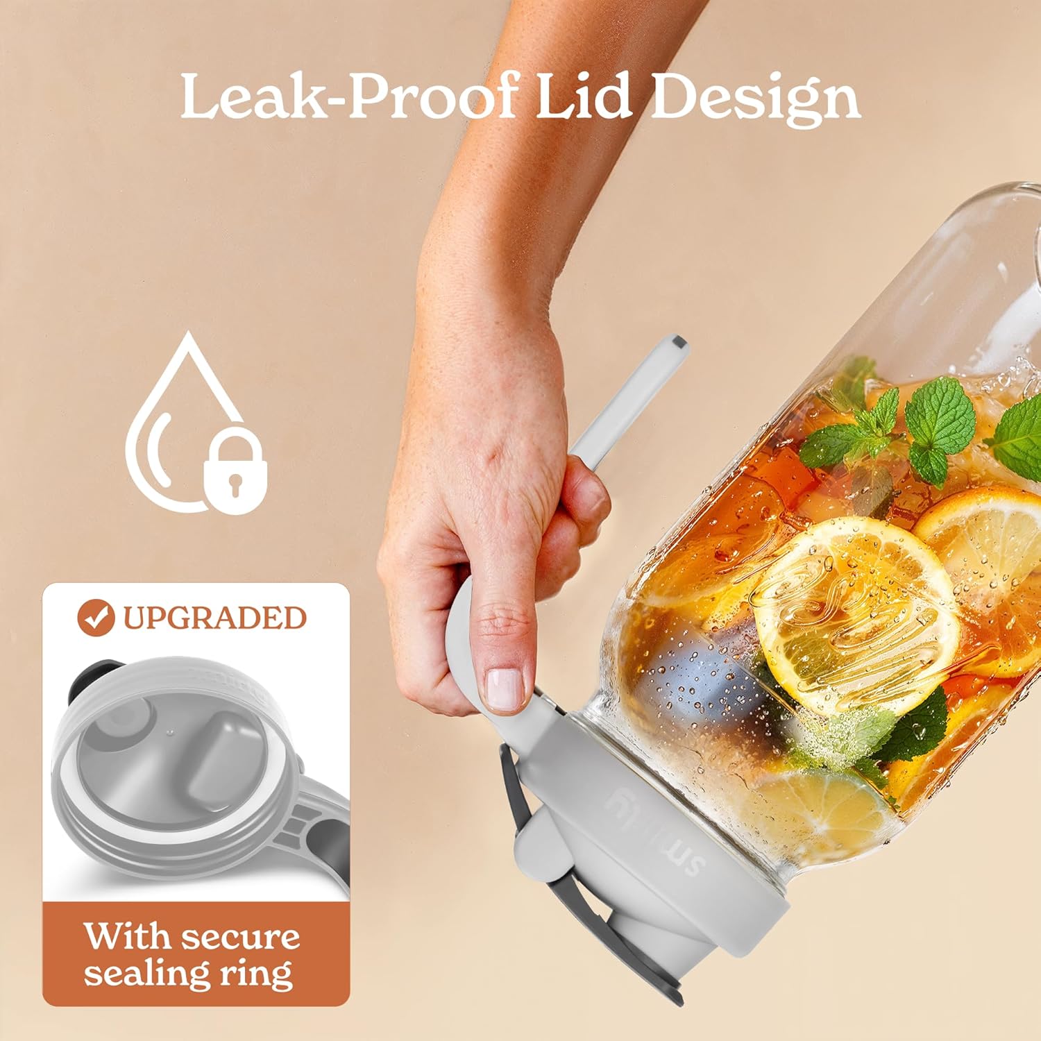 - Functional design: The non-slip handle on this 2 quart pitcher with lid ensures steady pouring.Hanging ring on this large mason jars adds convenience for easy carrying and storage