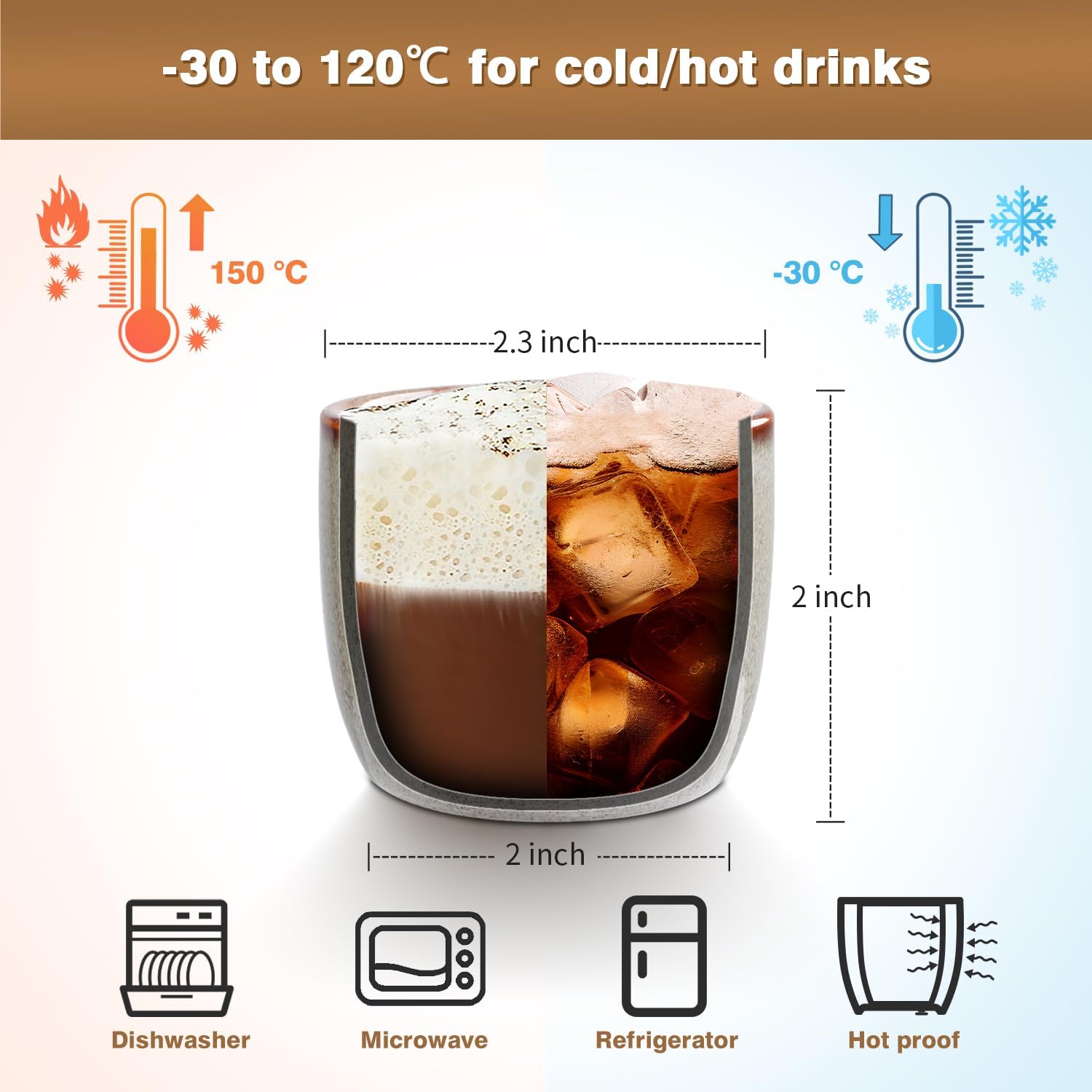 - 【 Perfect Size for Espresso 】Maximum capacity 2 ounce, Diameter 2.3 inch 6cm, Height 2 inch 5cm, very suit for latte and double espresso and tea.