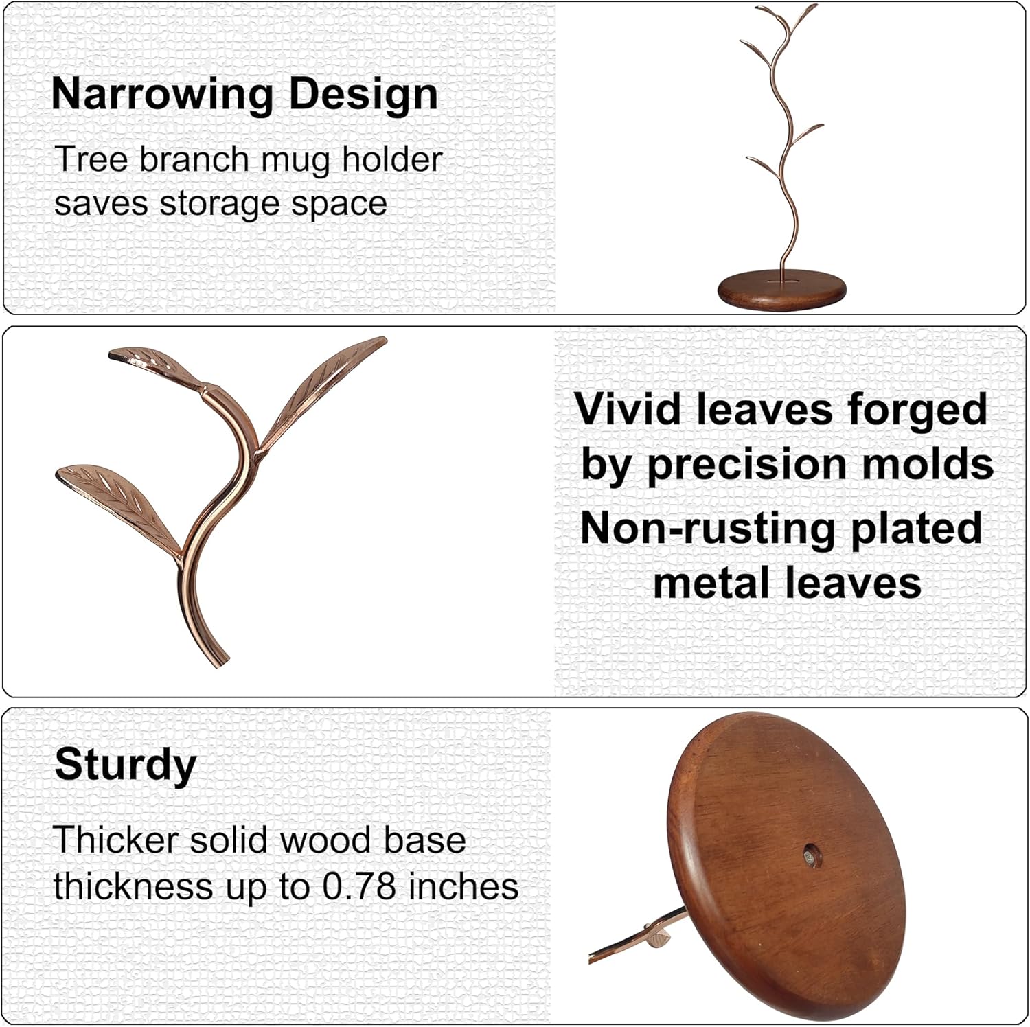 - 【STYLISH & ELEGANT】- This coffee mug holder stand inspires an up-to-date look that is fresh and contemporary.Simple leaf shape paired with classic wood base creates a traditional appearance with a modern flair,sleek and stylish design make it become an elegant artist ornament on your table and the ultimate coffee station organizer.
