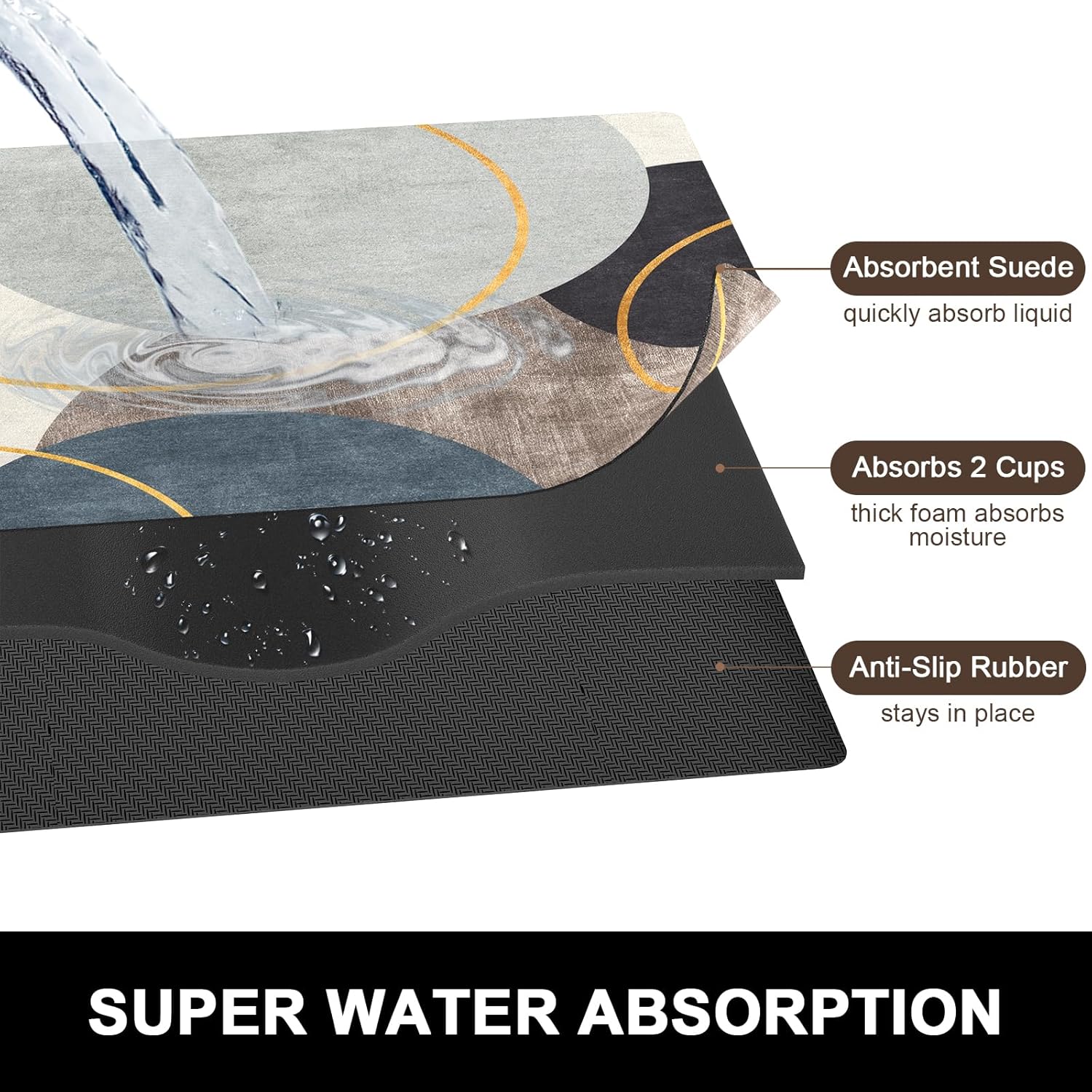 Rnivvi Dish Drying Mat for Kitchen Counter, 16 x 18" Cute Boho Theme Absorbent Heat Resistant Drying Pad with Non-slip Rubber, Coffee Bar Mats for Coffee Machine Dish Rack, Abstract Art Circle