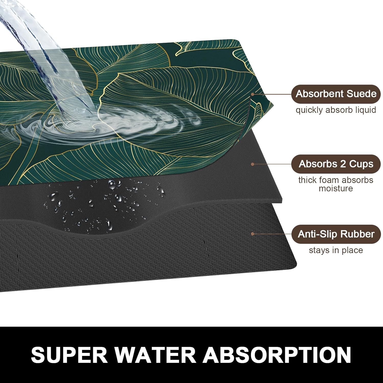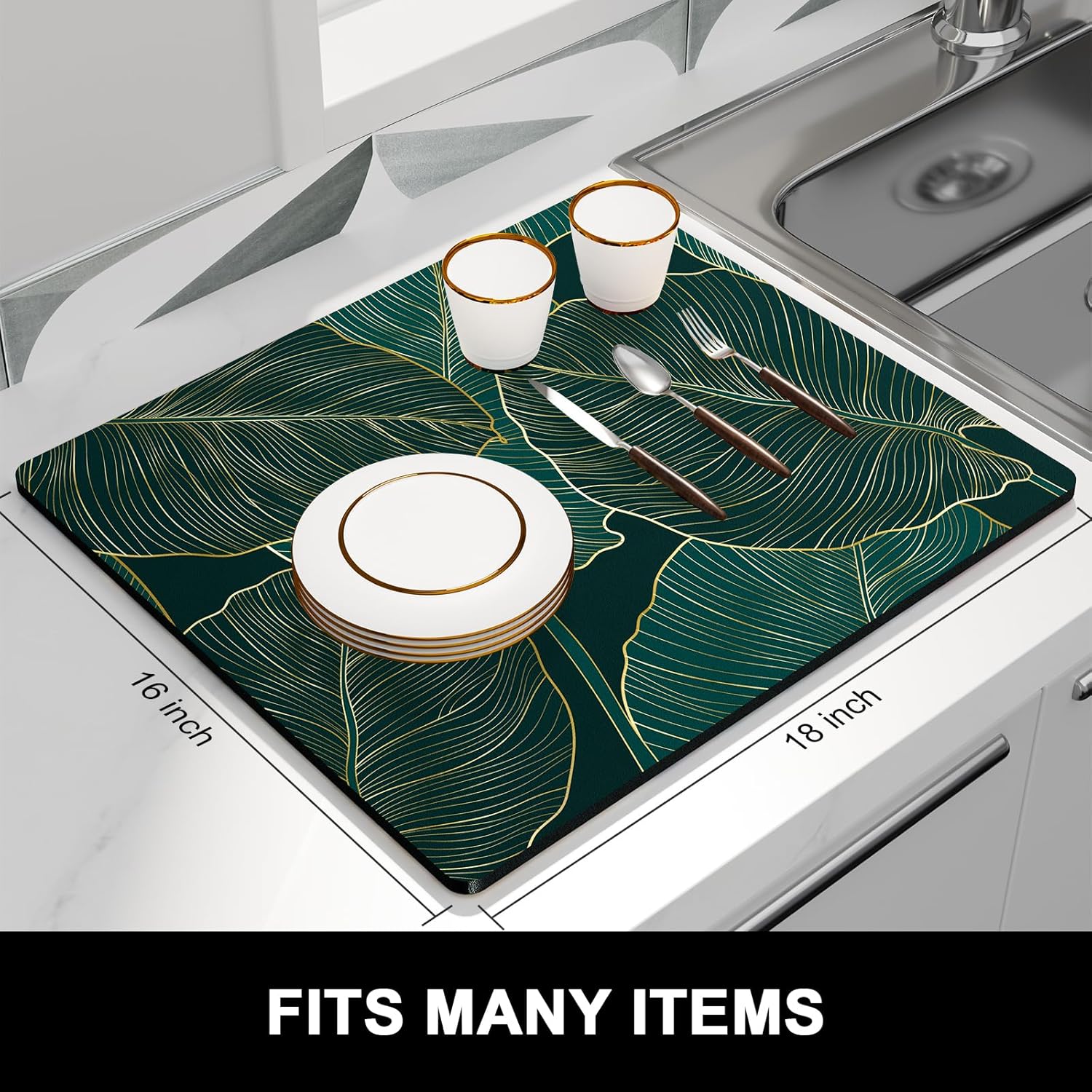 - Super Water Absorption: Dish Drying Pad mat is crafted from suede and super absorbent nano material. The surface is soft, anti-fray and can quickly and efficiently absorb water, which helping you to solve the dilemma of dampness after washing dishes