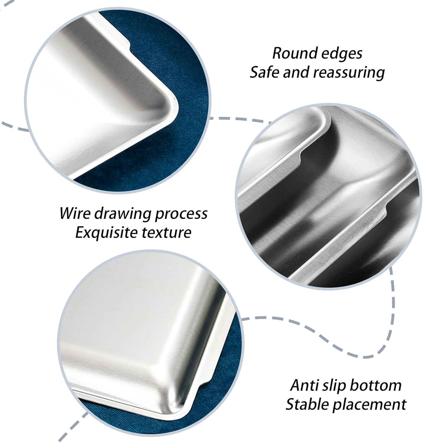 - Special Design: The raised edges design can prevent food spill away. The extended parts on both sides facilitate gripping the tray.