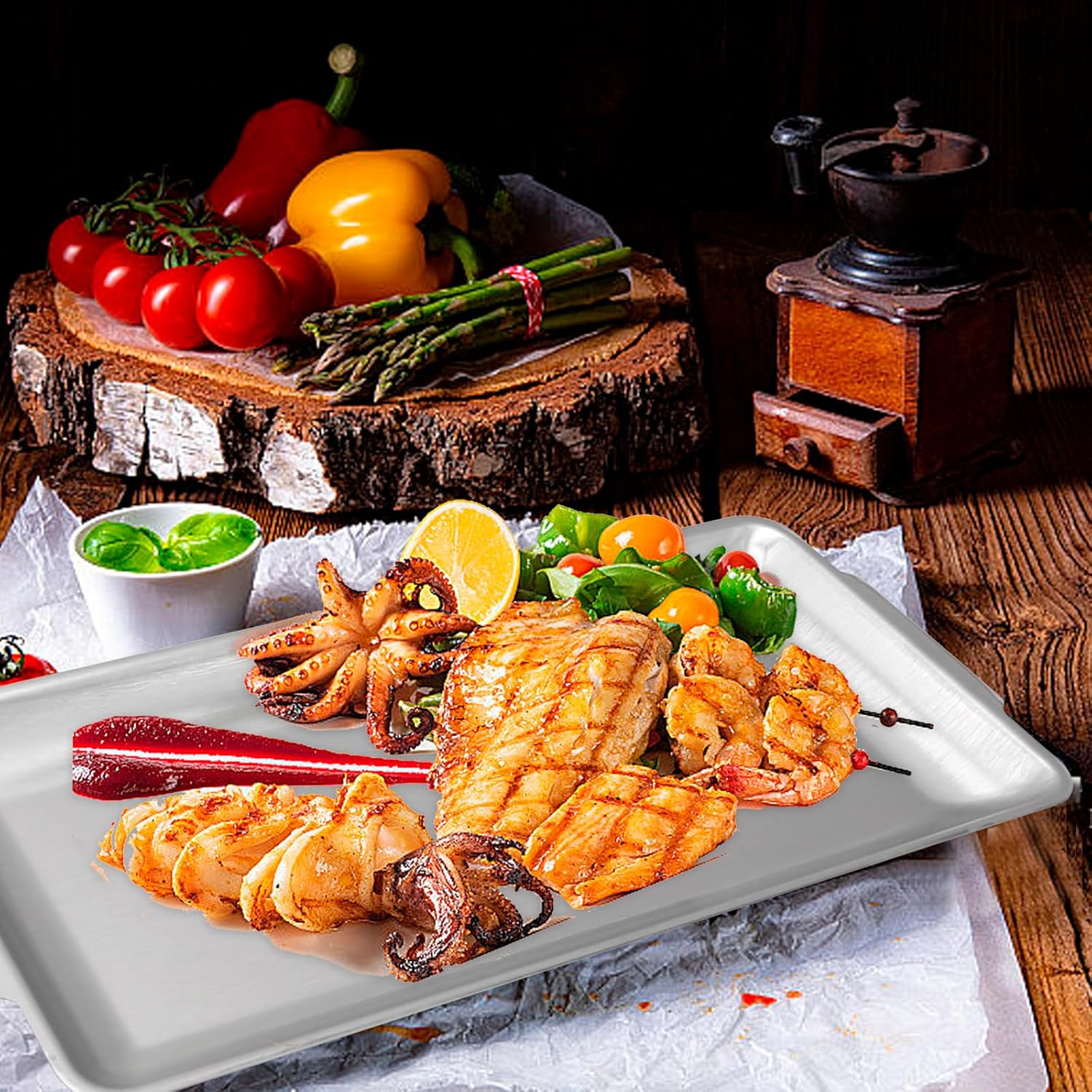 3Pcs 304 Stainless Steel Food Serving Tray, 12.6" Rectangular Serving Platters Multipurpose for Kitchen,Party Organizer Tray for Buffet Brushed Nickel (Silver)