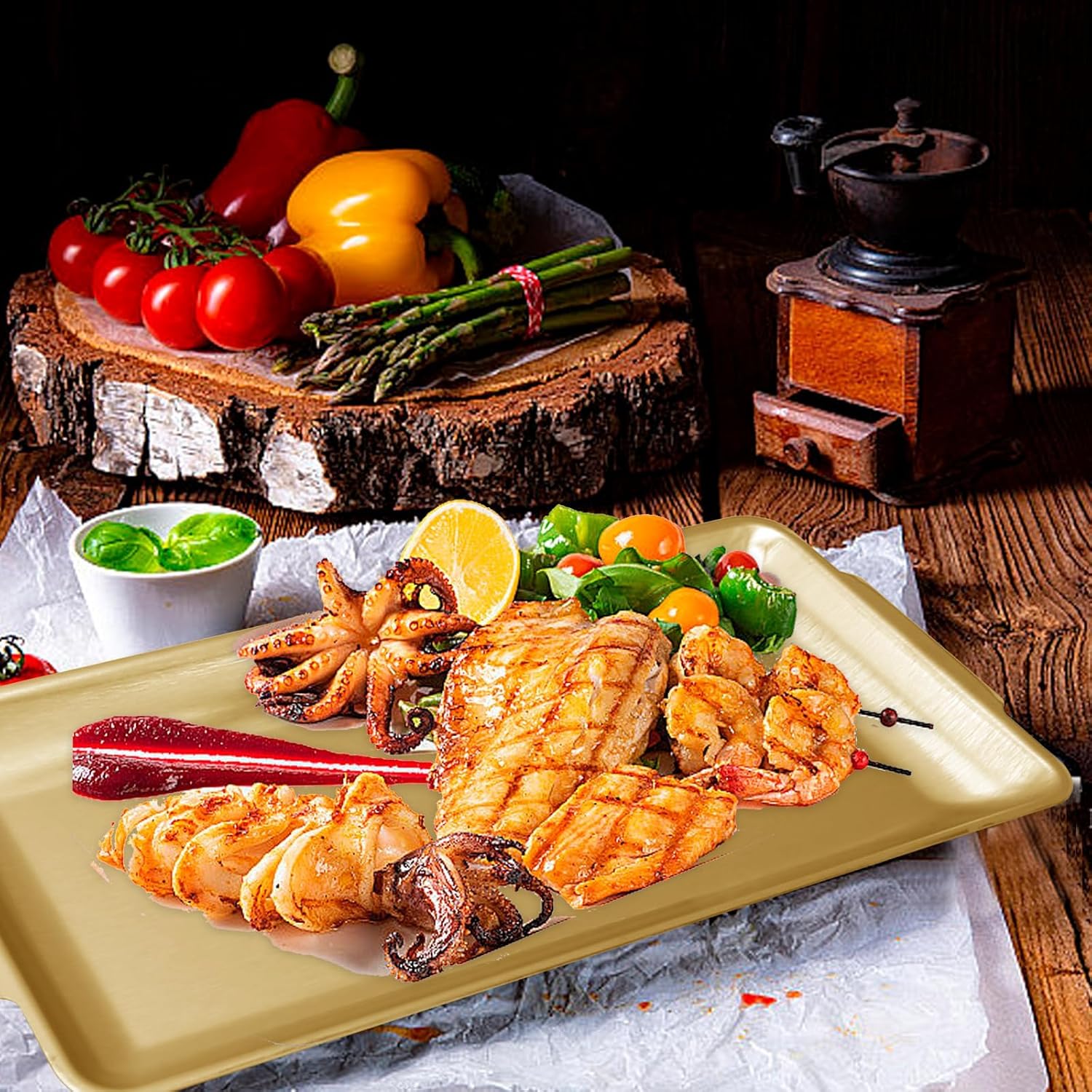 - Special Design: The raised edges design can prevent food spill away. The extended parts on both sides facilitate gripping the tray