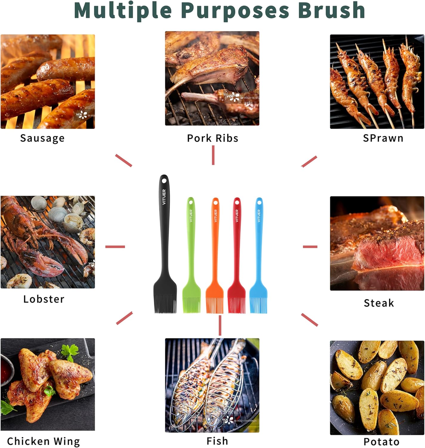 - 5. What You Get: 1pcs large silicone basting brush, 4pcs small silicone pastry brush and friendly customer service. Whether it's for a birthday, a housewarming, a holiday, or simply to say 'thank you,' our 5-Piece silicone cooking brush for oil and sauce is a thoughtful and practical gift that will be appreciated by everyone.
