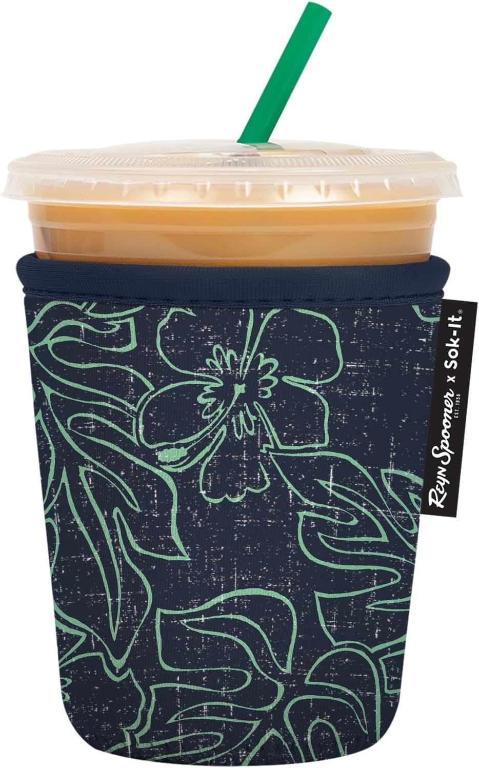 Sok It JavaSok Iced Coffee & Cold Soda Insulated Neoprene Cup Sleeve (Reyn Spooner Monstera Ink, Small: 16-20oz)