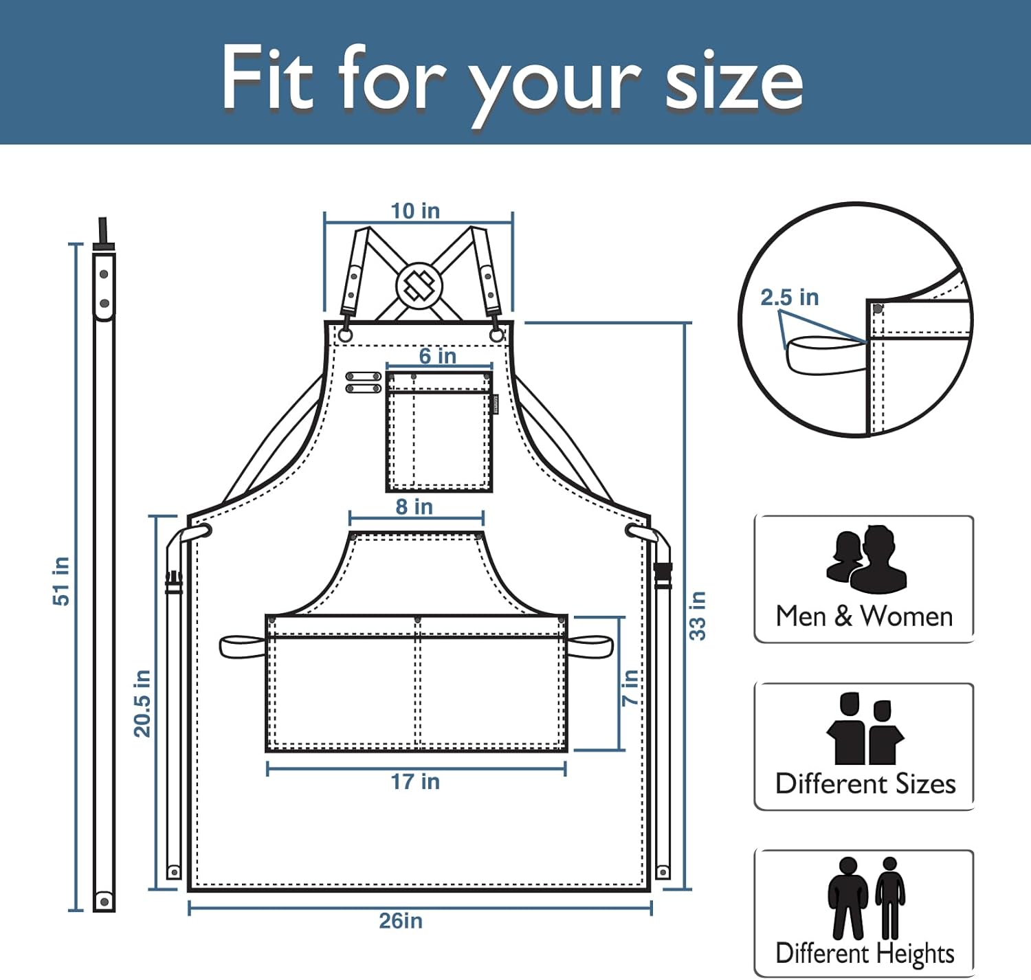 - Universal Size: The apron size is 25.5 inches x 32.5 inches, suitable for full coverage size. The ultra-long, quick-release strap can accommodate multiple sizes, up to men's XXL size (51 inches waist circumference)