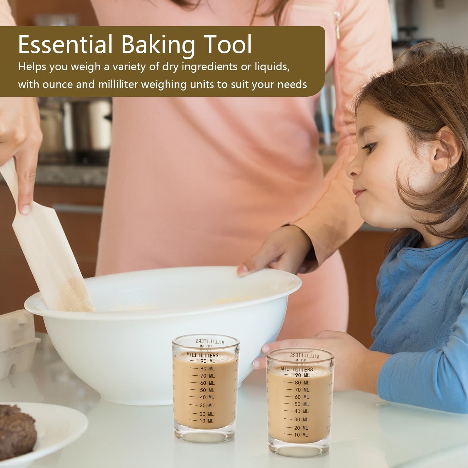 - 【Easy to Measure】 The 90ml measuring cup adopts a classic round design, with two different measurement methods for you to choose. The maximum scale is 3 ounces (90ml). It is easy to measure various liquids or dry ingredients. It is more convenient than using a measuring spoon. It is ideal for kitchen and baking. A great tool for training and daily use.