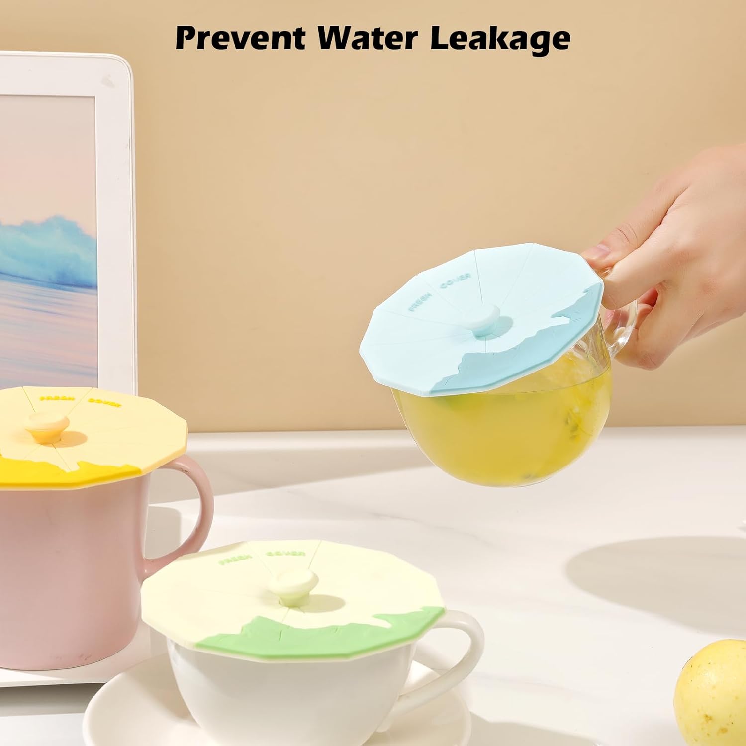 Silicone Cup Covers (Set of 3) , Multicolored Silicone Lids for Mugs, Cups, Flexible Mug Covers,Hot Cup Lids for Coffee & Tea