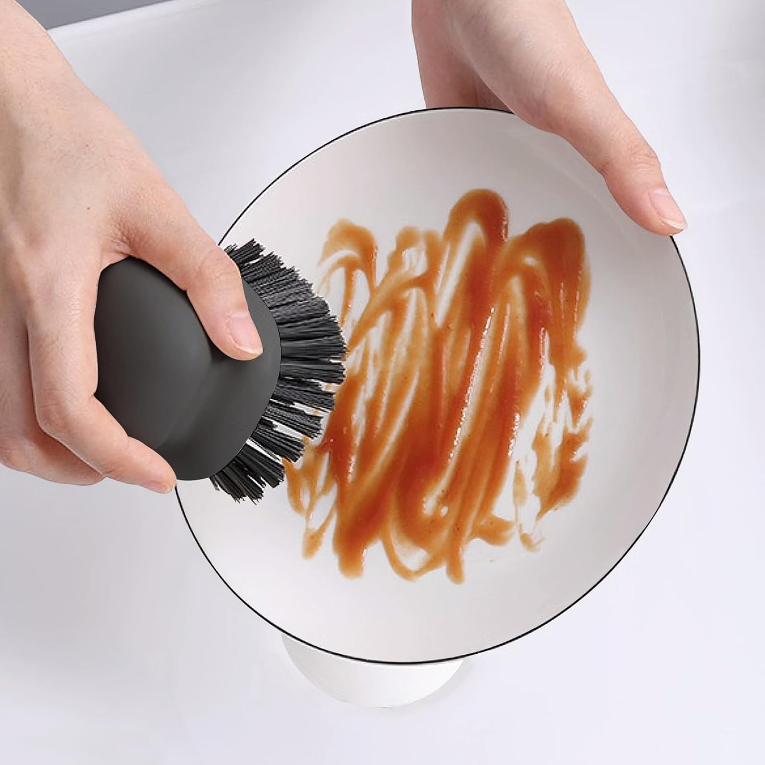 2Pack Dish Scrub Brush, Palm Brush Dish Scrubber with Ergonomic Grip, Kitchen Scrub Brushes for Cleaning for Pans, Pots, Kitchen Sink Cleaning-Black+White