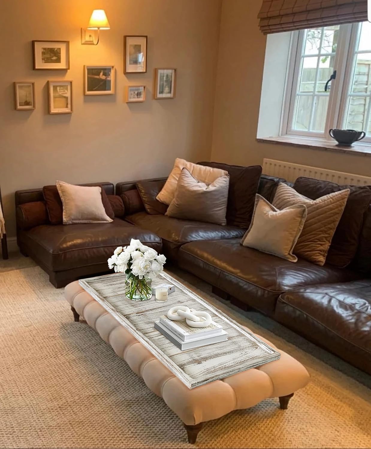 - 🌷 KING SIZE OTTOMAN TRAY - the dimension is 40 x 20 x 1.1 inches. Perfect size for as serving tray, decorative tray, ottoman tray and coffee table alternative to hold drinks, snacks, books, or decor items; serve as a convenient serving area, use it to hold appetizers, drinks, or even a small buffet setup.