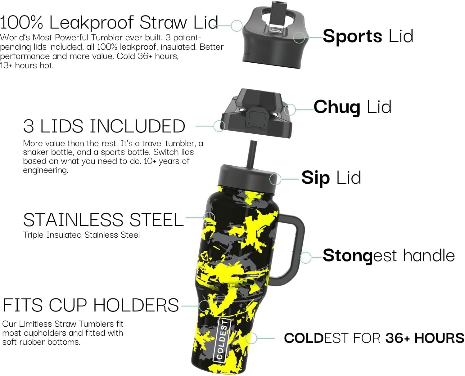 - 100% Leak-Proof, Guaranteed: No more worrying about spills- Coldest water bottle with handle is engineered for a completely leak-resistant experience. With three versatile lids, including a straw option, you can confidently take your drink anywhere without a single drop escaping.