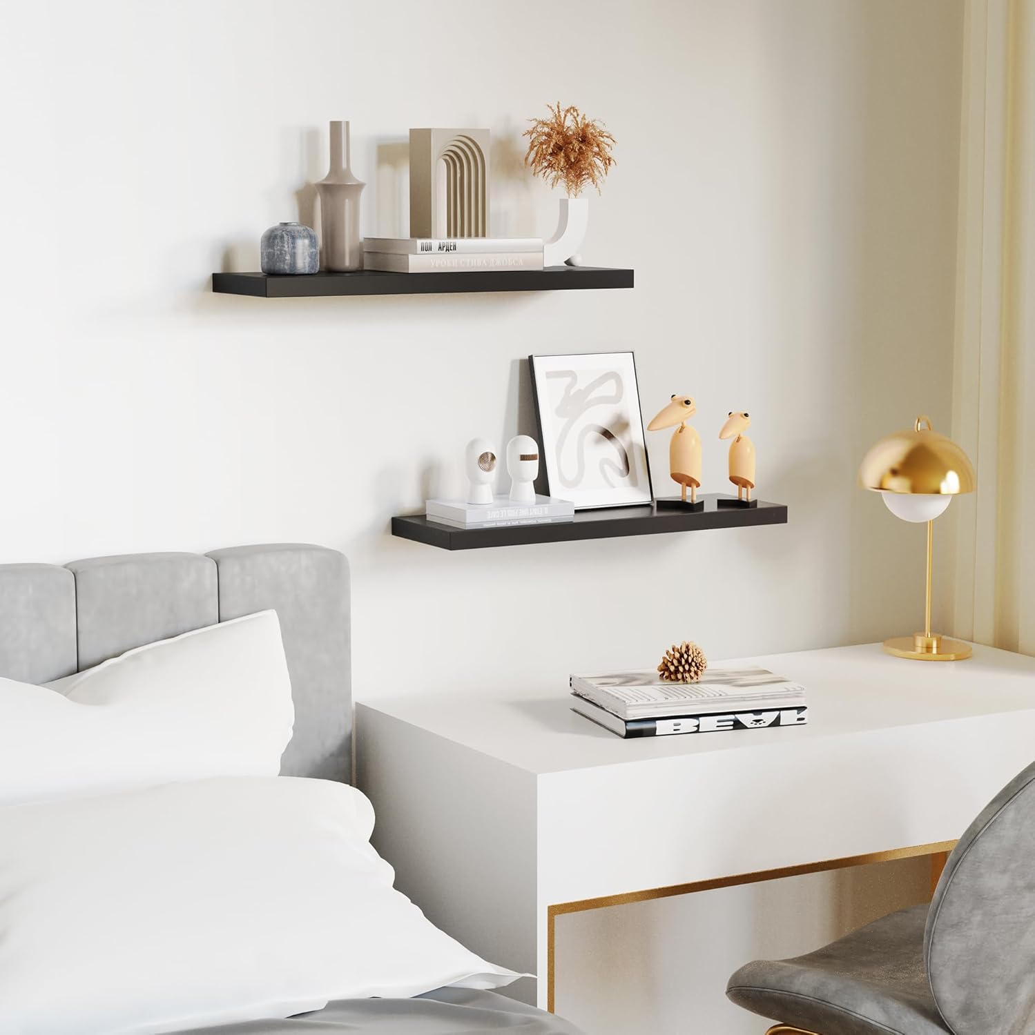 Floating Shelves for Wall, Black Wood Set of 2, 24" Mounted Shelf for Kitchen, Living Room, Bedroom, Bathroom Storage, Book Shelf, Home Decor, Frame Display