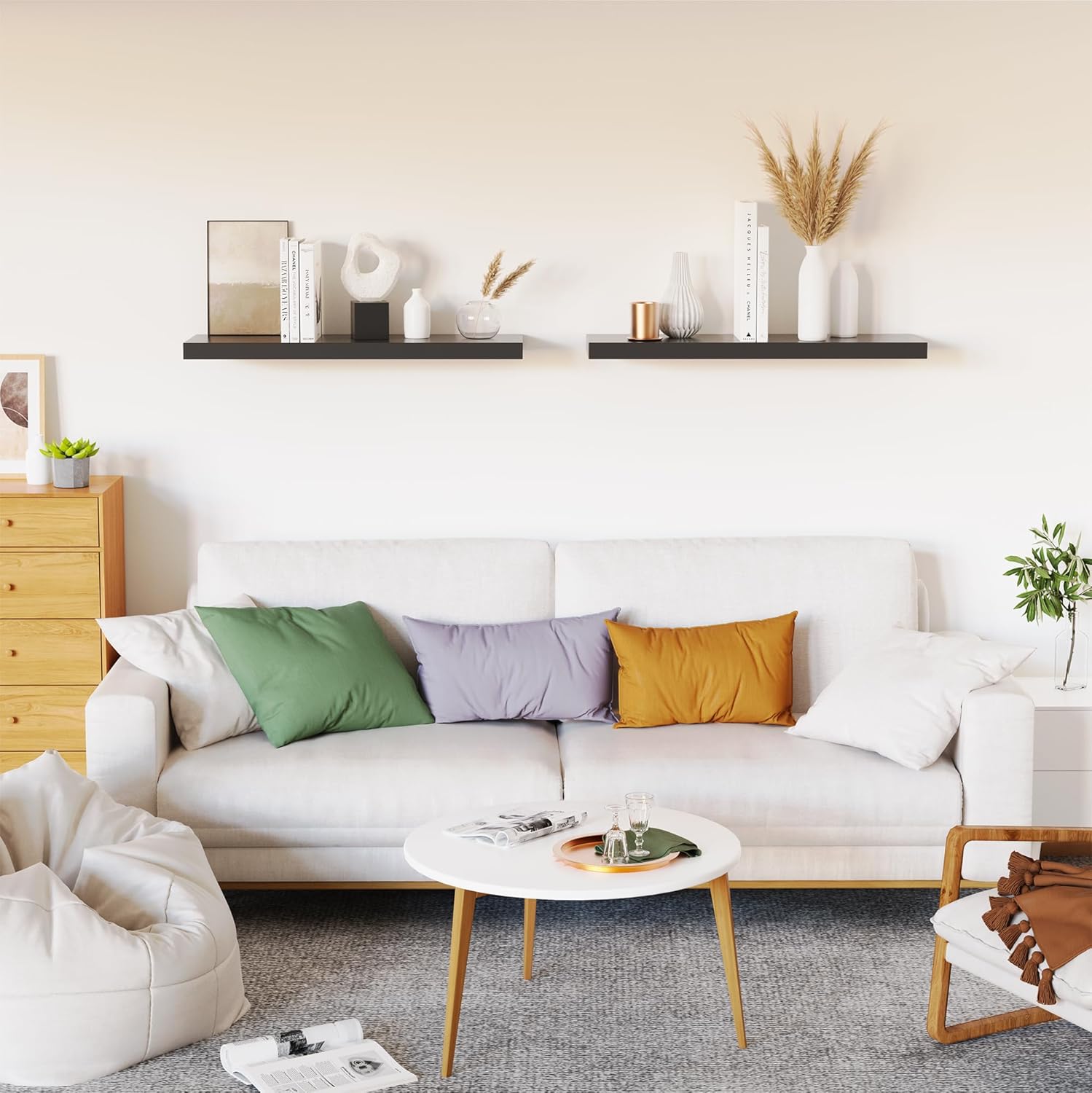 - 【Versatile & Functional】Our white floating shelves for wall can simplify our life which let everything will be in reach. Our wall shelf is a perfect space to display our family pictures, books, memorandums, charming antiques or artwork, spices or jars and fresh green plant. Our floating shelf wood not only give us extra storage but also improve the beauty of our home decor. Our white shelves can be perfectly integrated and decorated in the bathroom, kitchen, living room, bedroom and other place.