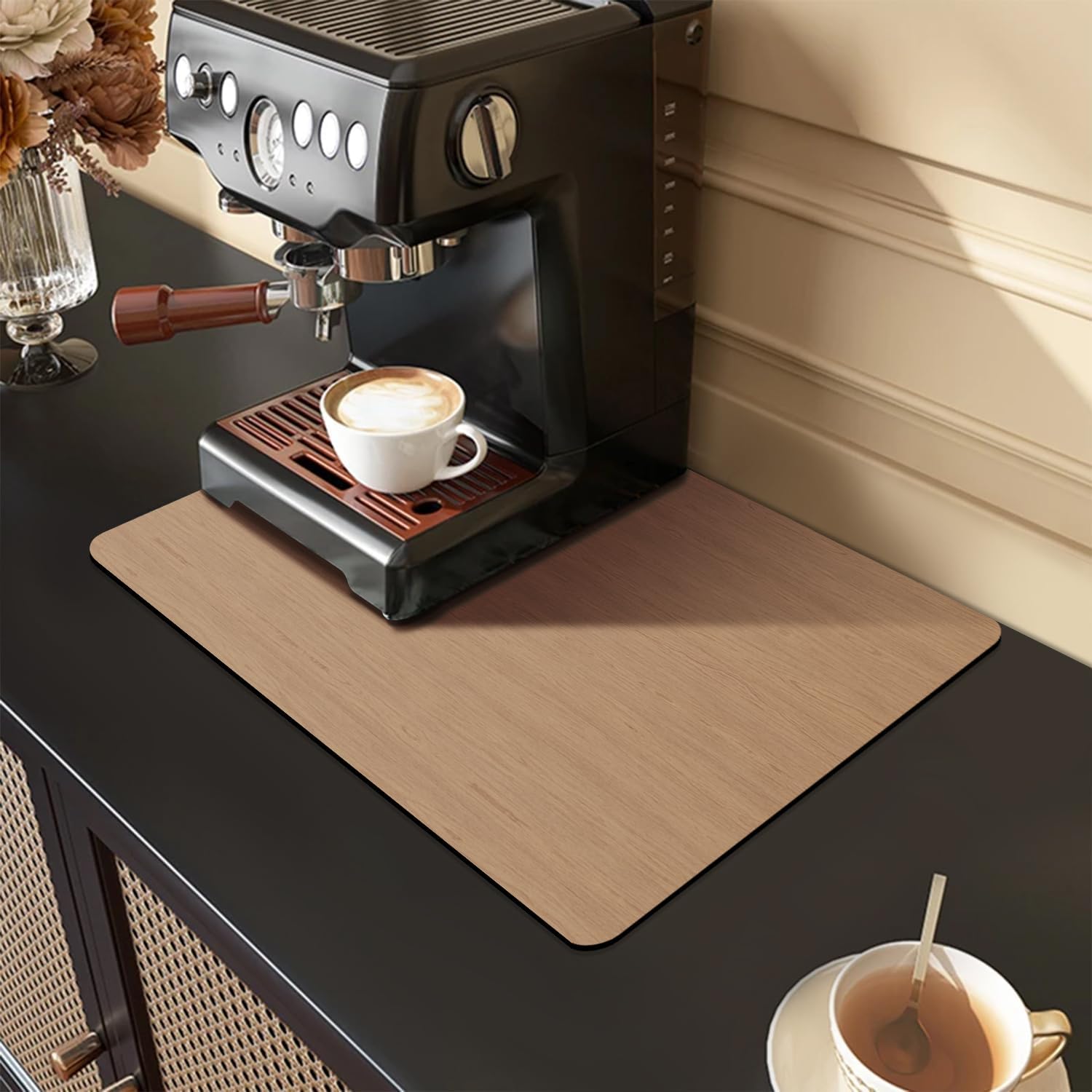 - ☕Absorbent: The coffee machine mat is made of Super absorbent nanomaterials, which can quickly absorb liquid and catch coffee splashes. Protect expensive kitchen tabletops and other indoor surfaces from coffee splashes or coffee bean stains. And can avoid any trouble of stirring.