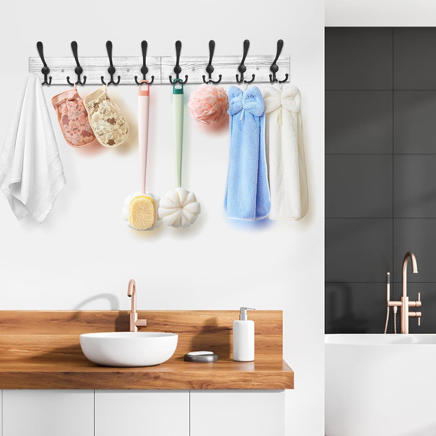 IBosins Wall Mounted Coat Rack, 31.4'' Long, Rustic Wood & Aluminum Coat Rack with 8 Black Tri-Hooks for Coat, Bag, Towel, Key, Hat, Umbrella