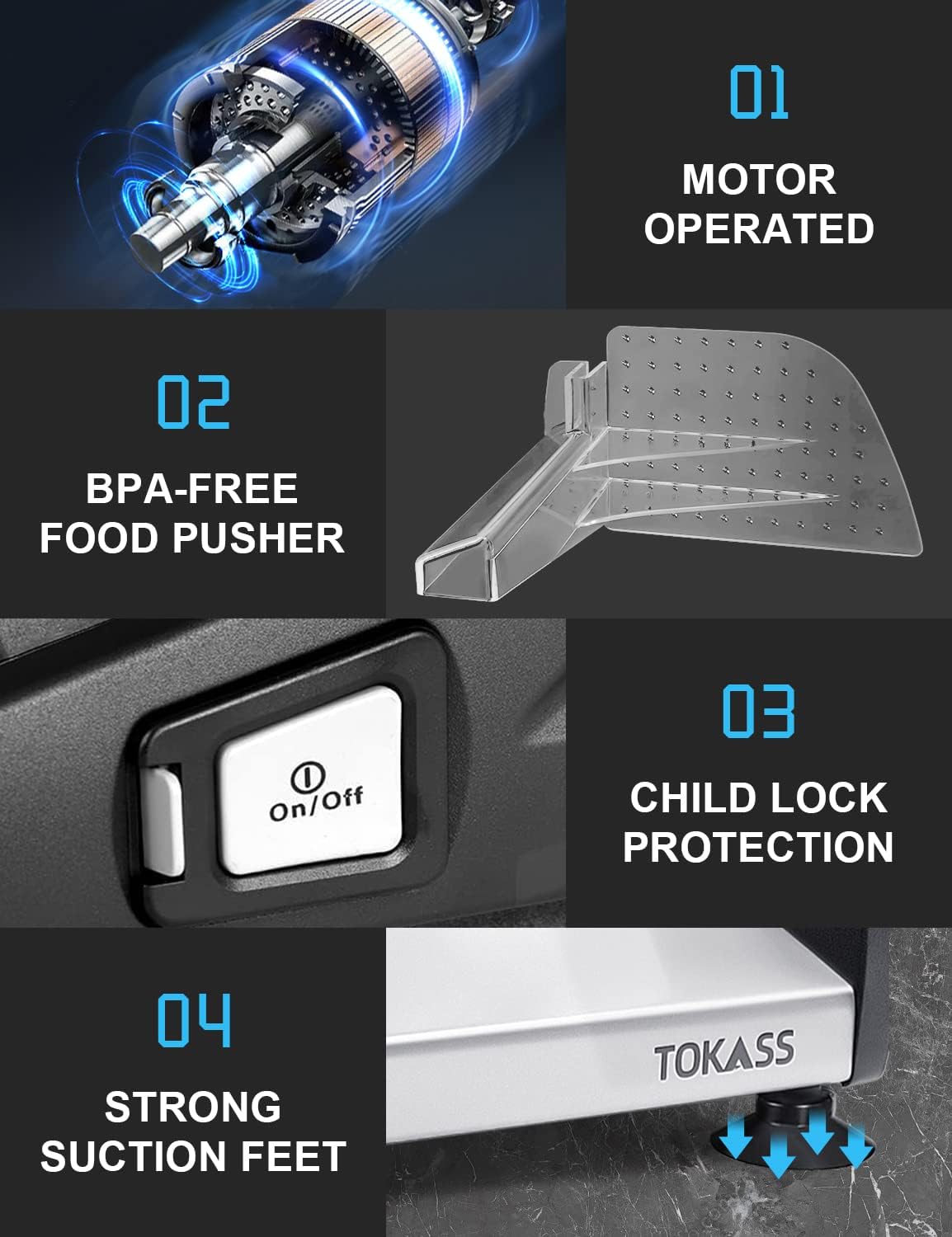 - Special Feature : Adjustable Thickness, Interchangeable Blades, Multifunction, Security lock, Suction cup feet