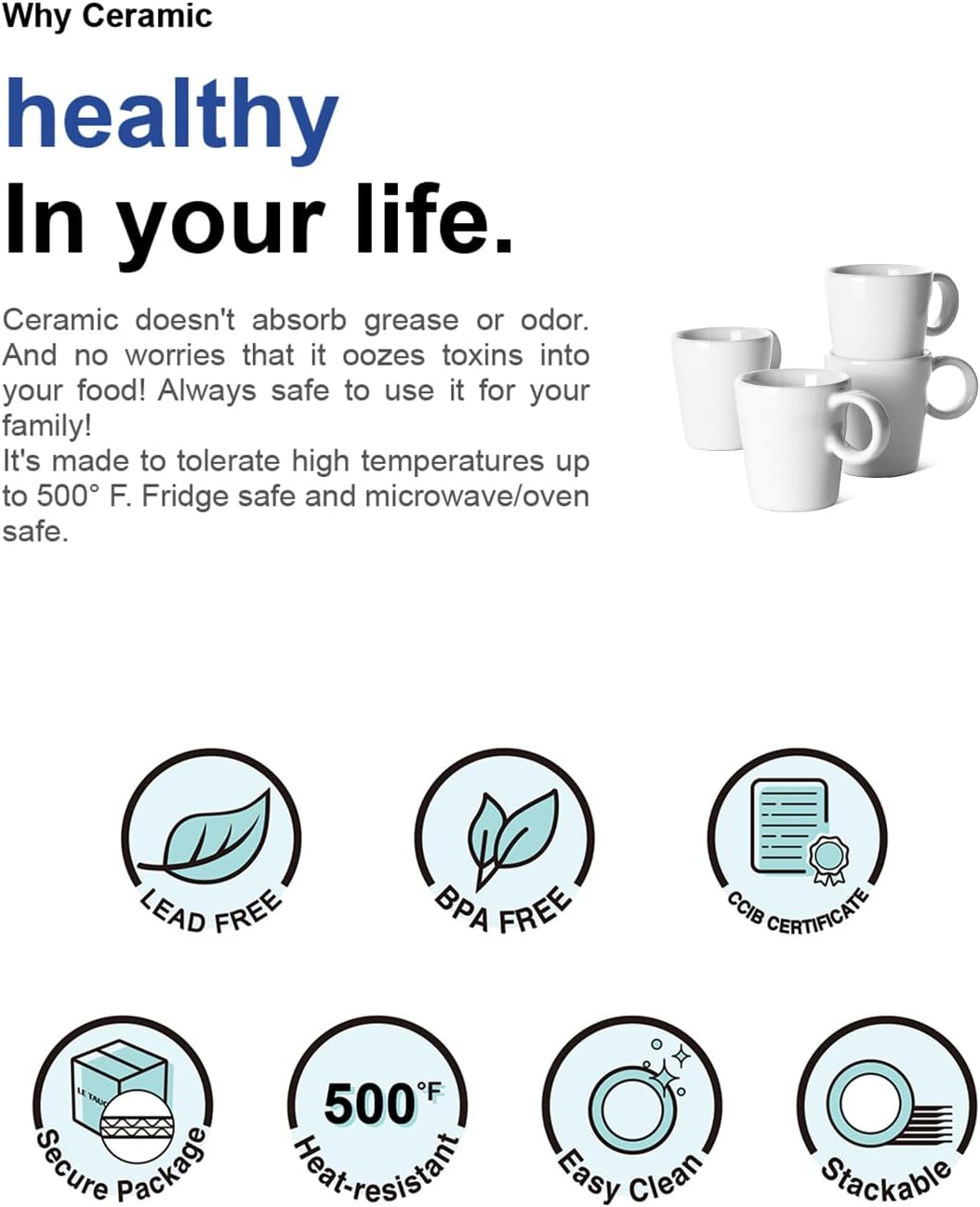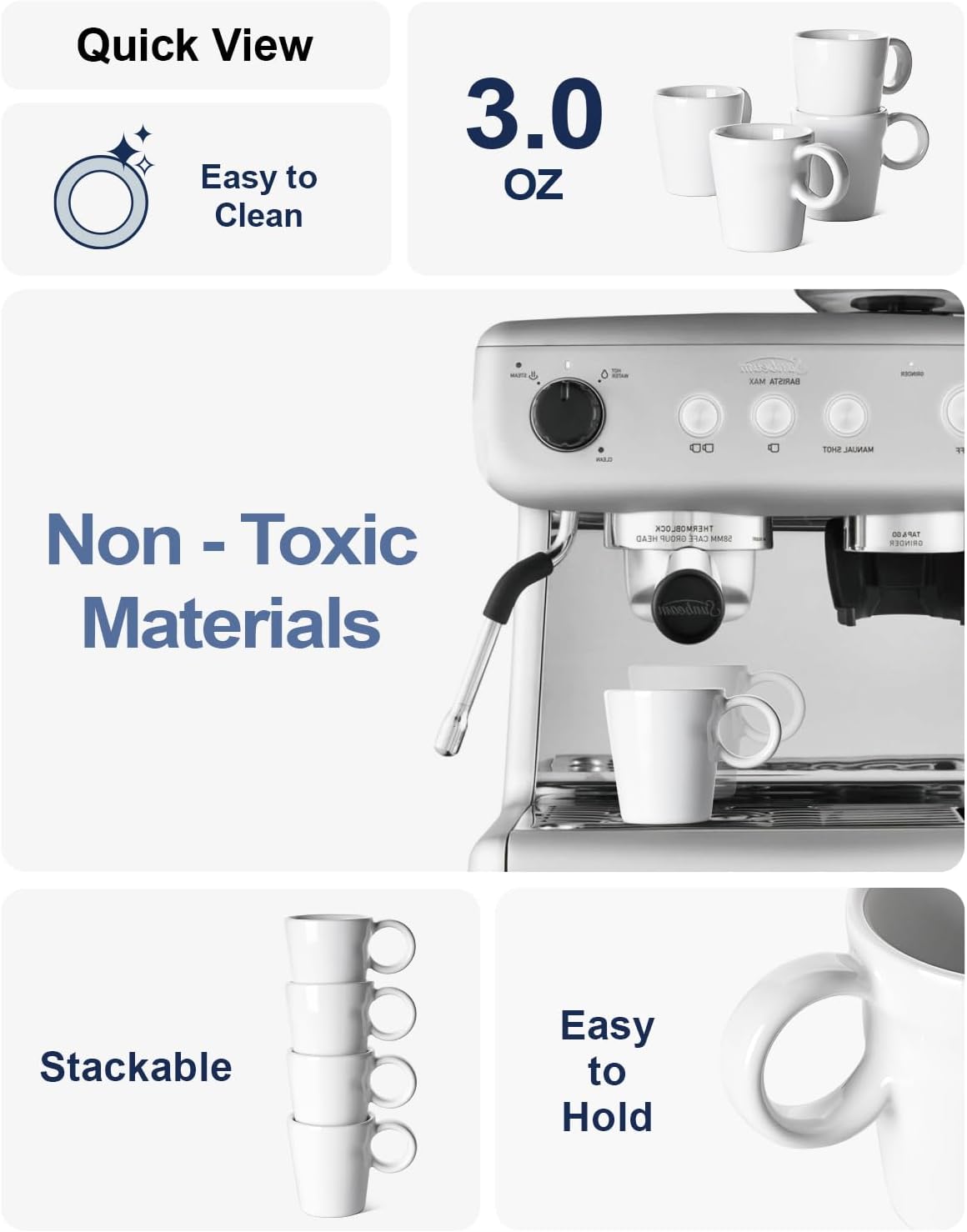 LE TAUCI 3 oz Espresso Cups, Ceramic Demitasse Cup, Mini Coffee Mugs for Home or Office, Stackable Expresso Shots Cup Perfect for Espresso Machine, Set of 4, White