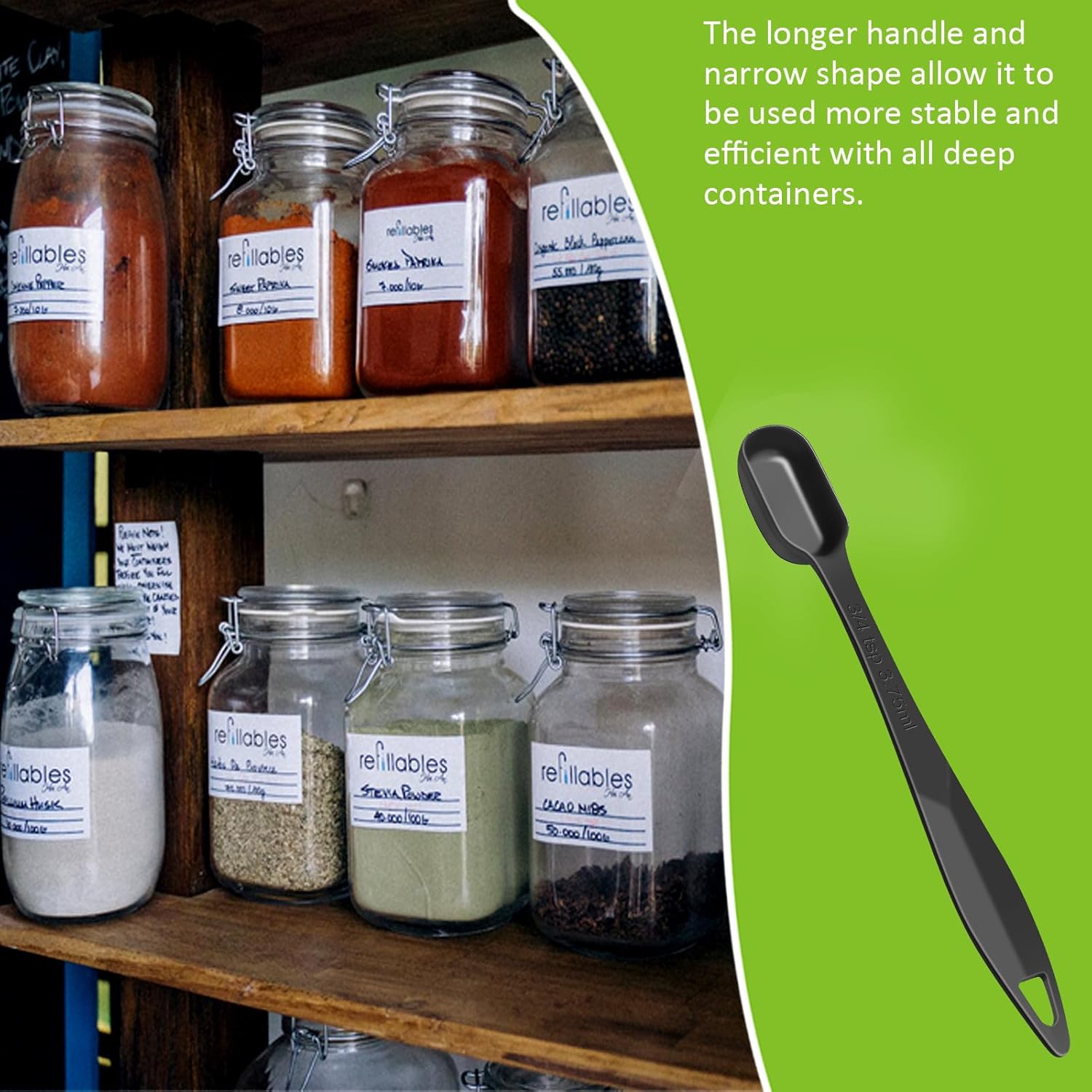 - 【High Quality】Unlike ordinary measuring spoons, the durability measuring spoon is 100% made from food-grade 304 stainless steel with rectangular & narrow design to ensure that the spices will not be spilled. The longer handle and narrow shape allow it to be used more stable and efficient with all deep or shallow spice jars, bottles, and containers.