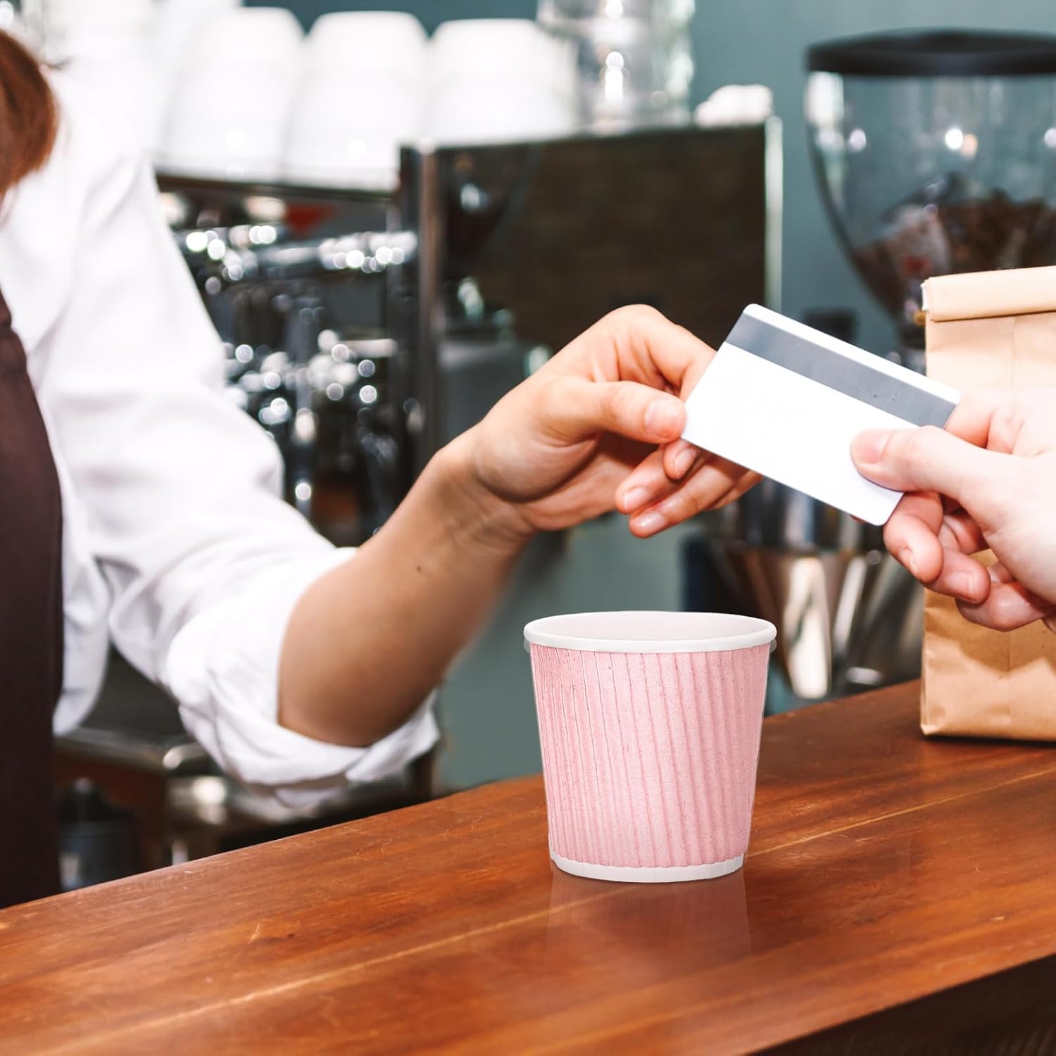 Yaomiao 200 Pcs 4 oz Disposable Espresso Coffee Cups Ripple Corrugated Paper Insulated Hot Cups for Party Cold Drinks Hot Beverage Tea(Pink)