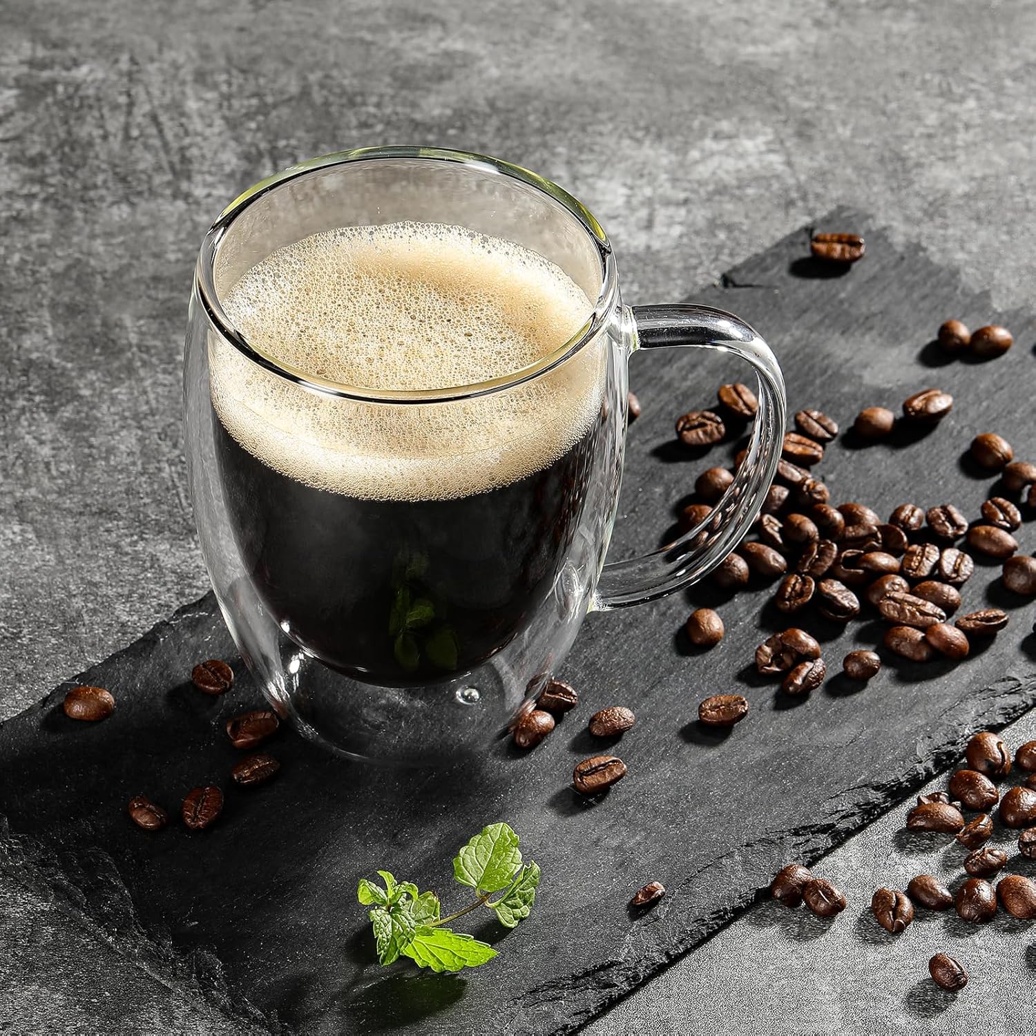 - 2 Pack Double Walled Glass Coffee Mugs with Handles, Large Insulated Layer Coffee Cups, Clear Borosilicate Mugs, Perfect for Cappuccino, Tea, Latte, Espresso, Hot Beverage, Wine, Microwave Safe: Double wall design, effectively keep hot and cold drinks for a long time, and prevent condensation from forming on the outer wall of the cup.