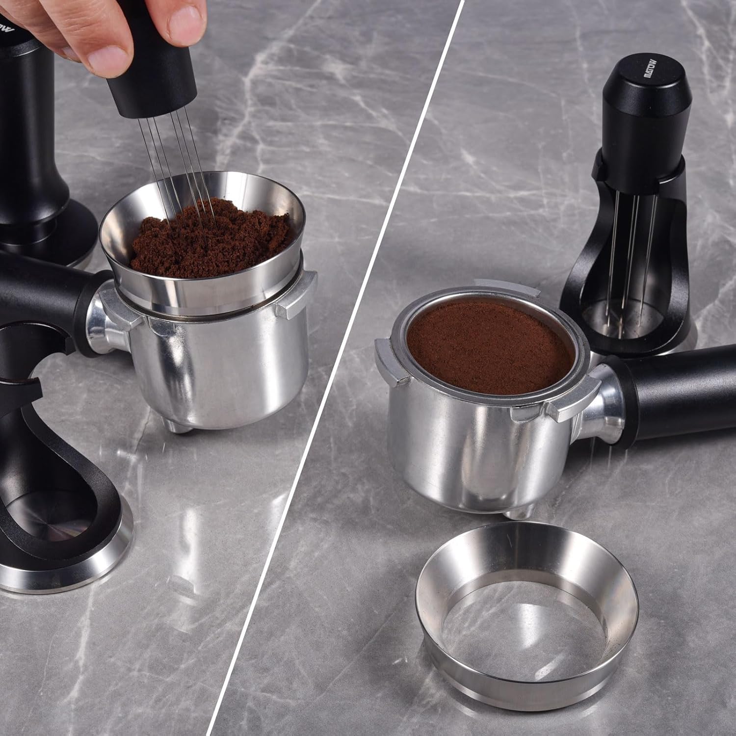 - MEGNETIC BASE FOR SECURE - Comes with 8 magnets on the back of the ring keep the funnel snugly on your portafilter basket, even upside down or during some tapping.