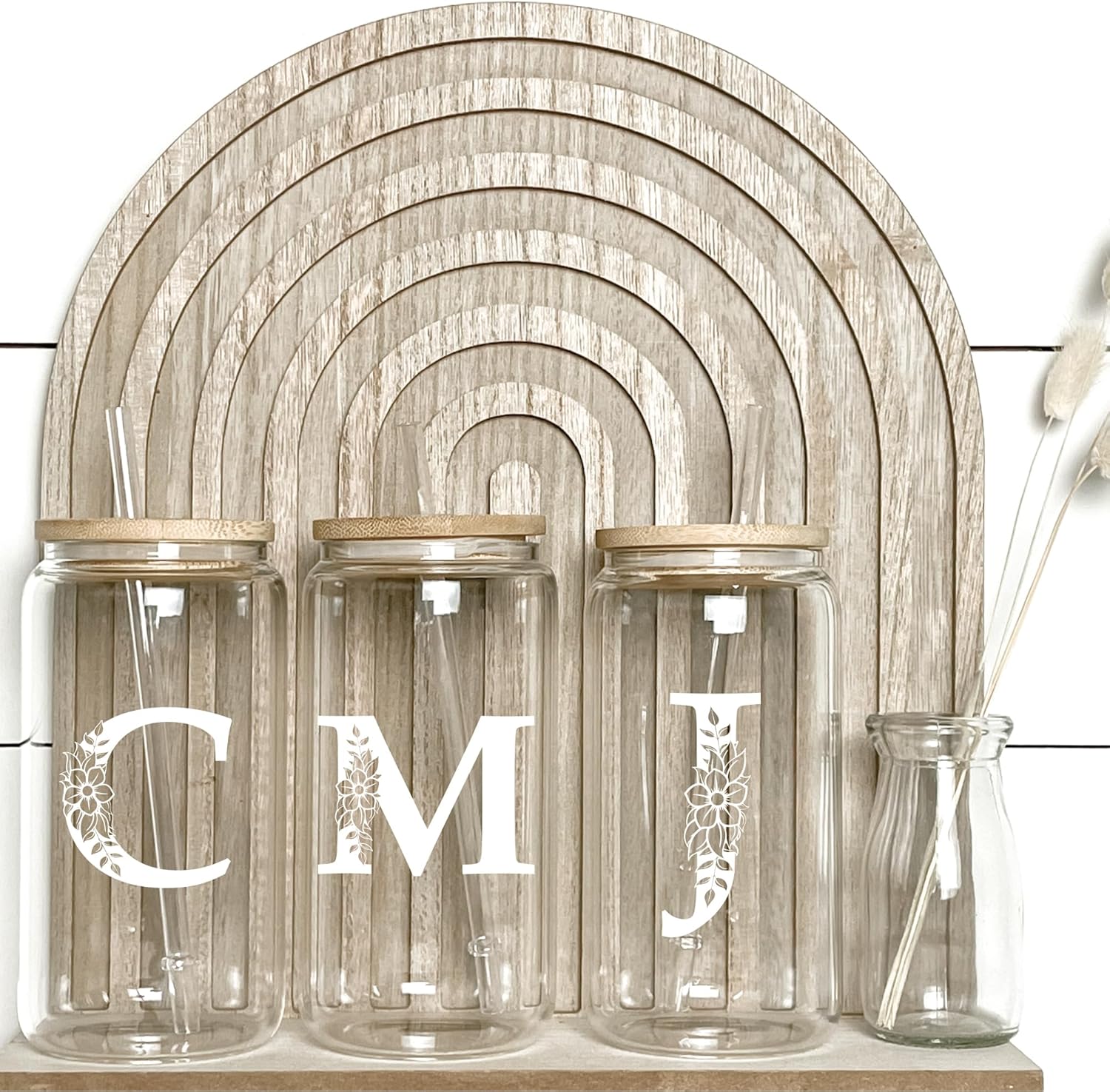 - HIGH-QUALITY AND DURABLE: This floral monogrammed glass cup is made of high borosilicate glass, ensuring it can withstand high and low temperatures without cracking easily.