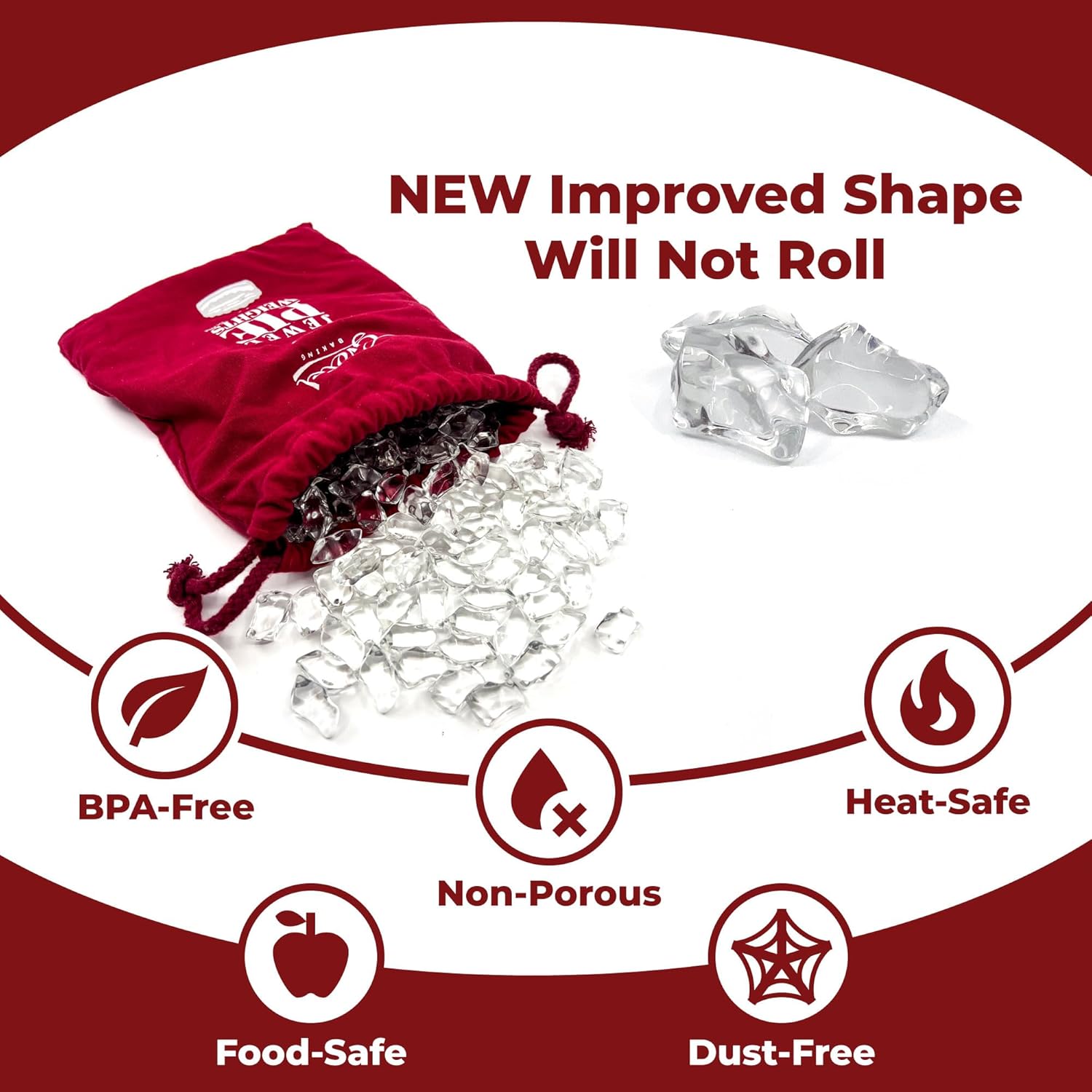 Jewel Glass Pie Weights for Baking | Will Not Roll Away | Better Than Ceramic | Dust-Free Borosilicate Glass | Large Quantity 2.5 lbs | Drawstring Storage Bag | Essential baking tools and accessories