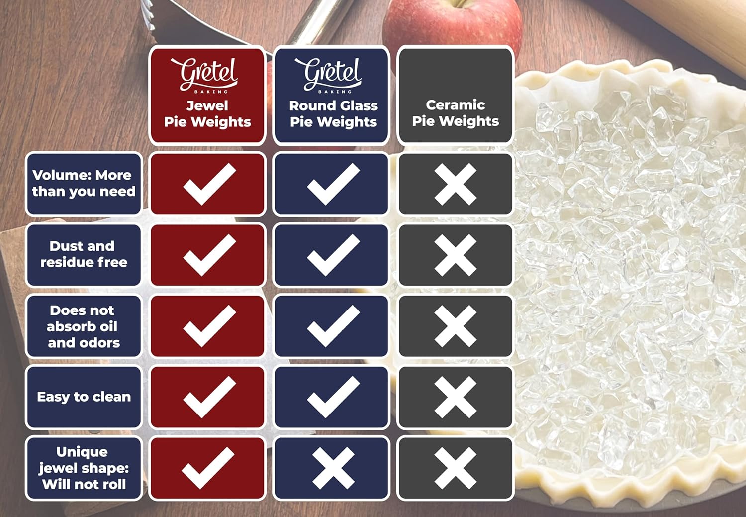 - Superior material - Our premium borosilicate glass weights are completely non-porous, dust-free, mold-free, easy to clean, and will not retain odors. For homemade pie crust dough or frozen pie crust.