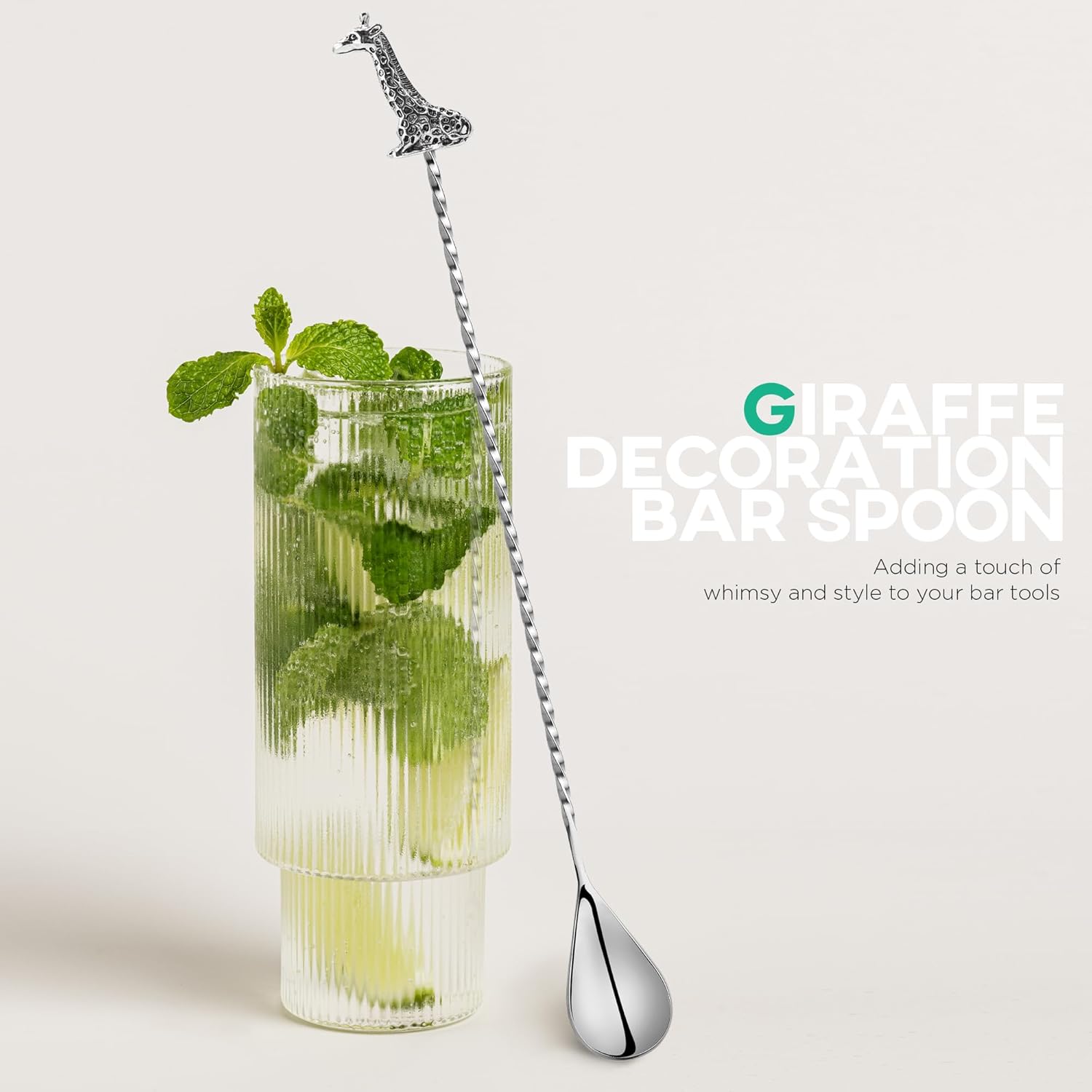 Homestia Bar Spoon Cocktail Mixing Spoon, Spiral Pattern Bar Cocktail Shaker Spoon, Stainless Steel Long Handle 12 Inches, Drink Stirrers Spoons with Giraffe Handle for Cocktail Shaker Tall Cups